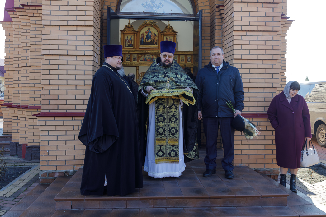 За богослужением молился строитель данного храма Владимир Иванович Макаренко, прихожане храма и жители районного центра Петропавловка.