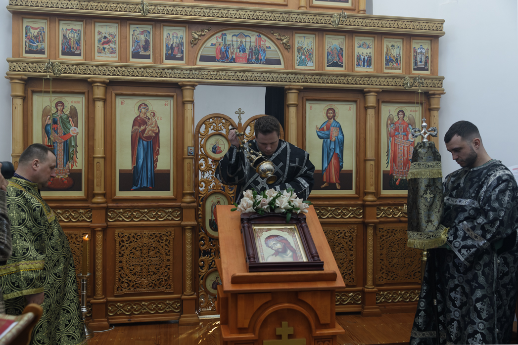 Богослужебные песнопения исполнил хор Ильинского кафедрального собора под управлением регента Марины Куделиной.