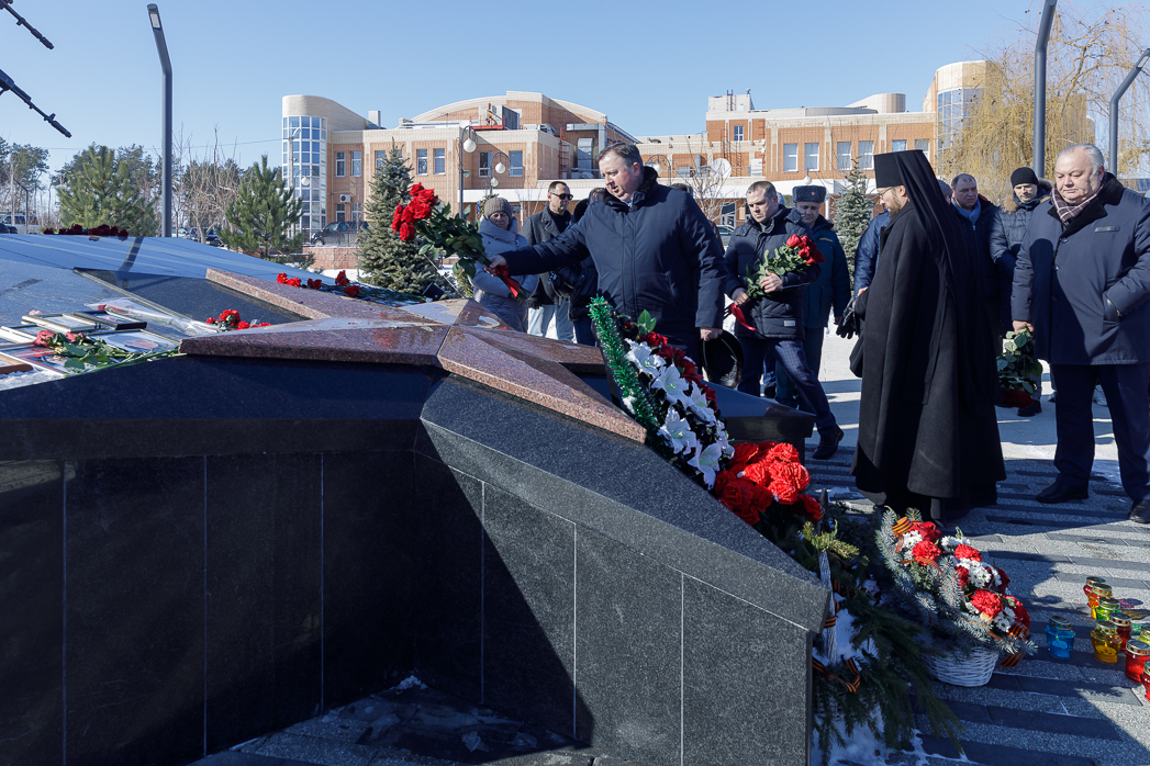 В завершении все присутствующие возложили цветы к мемориалу, который символизирует верность присяге, воинскую доблесть, преданность родной стране и нашу память о героях.