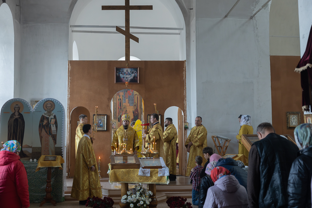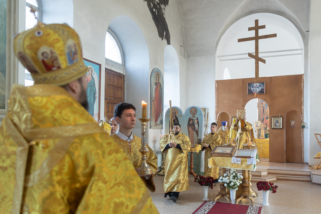 После Литургии епископ Дионисий, возглавил крестный ход вокруг храма совместно с духовенством и прихожанами.