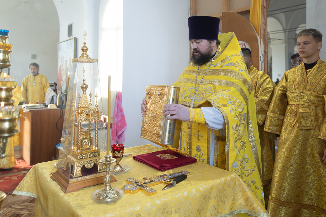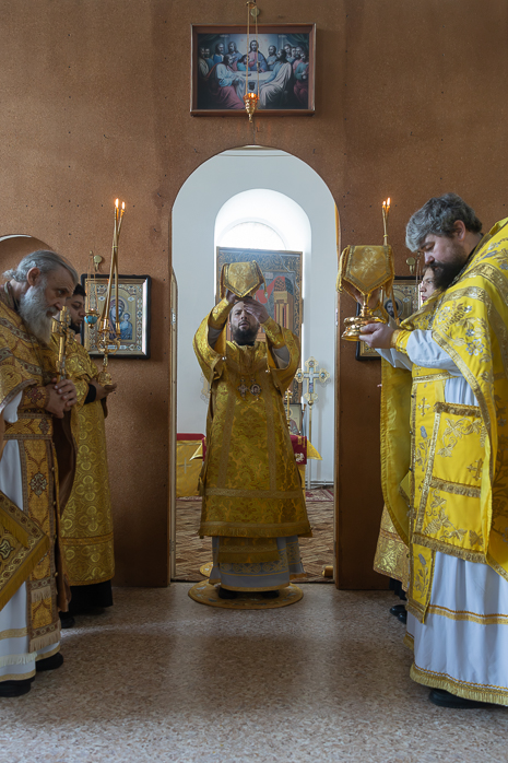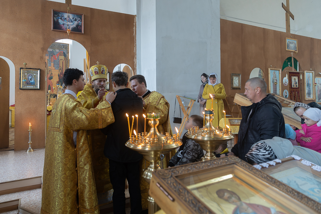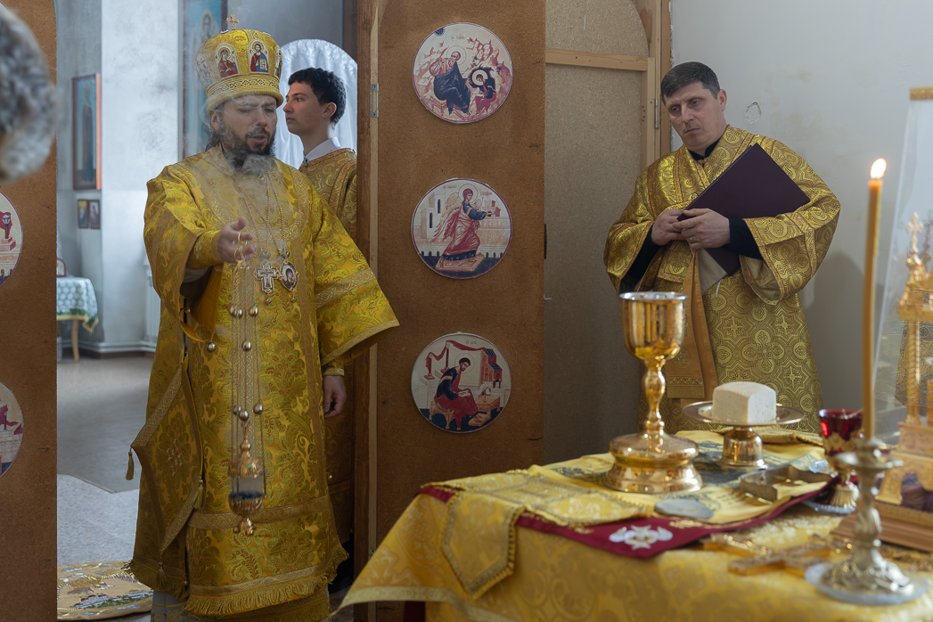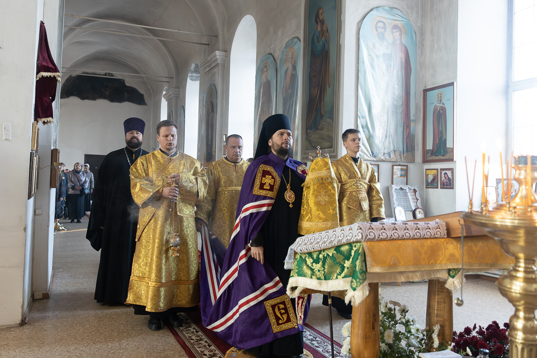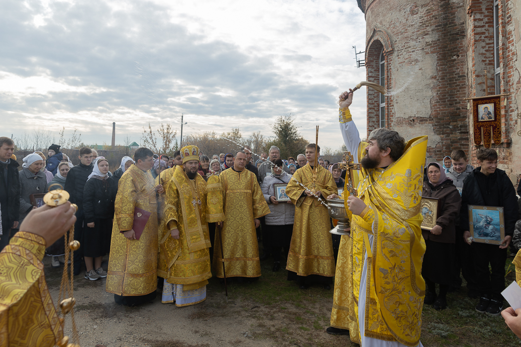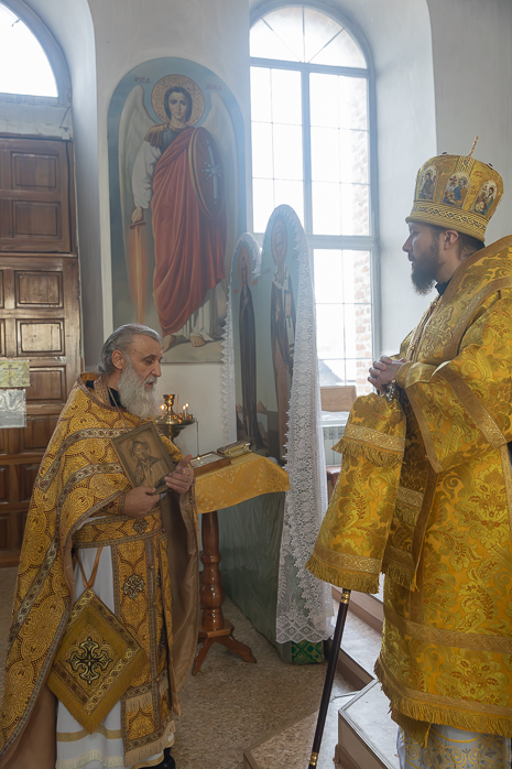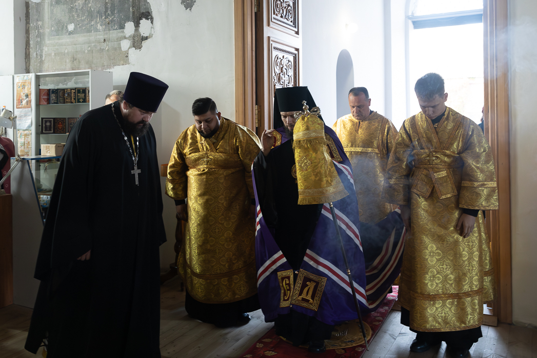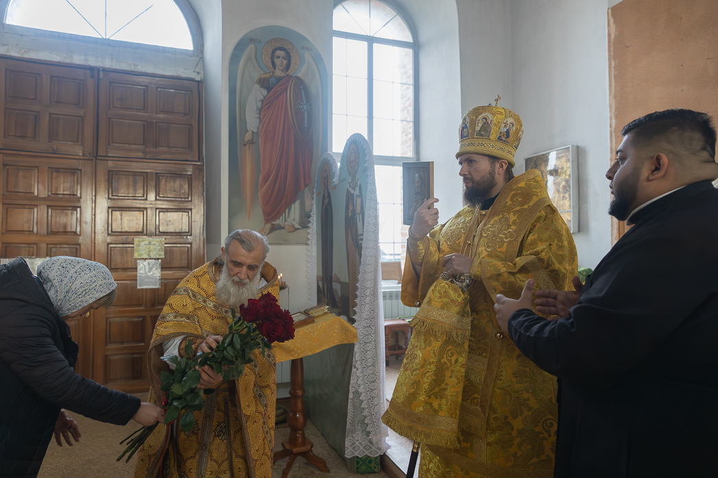 Его Преосвященству сослужили: благочинный Калачеевского церковного округа протоиерей Евгений Бей и настоятель храма Преображения Господня села Заброды протоиерей Евгений Сорокин.
