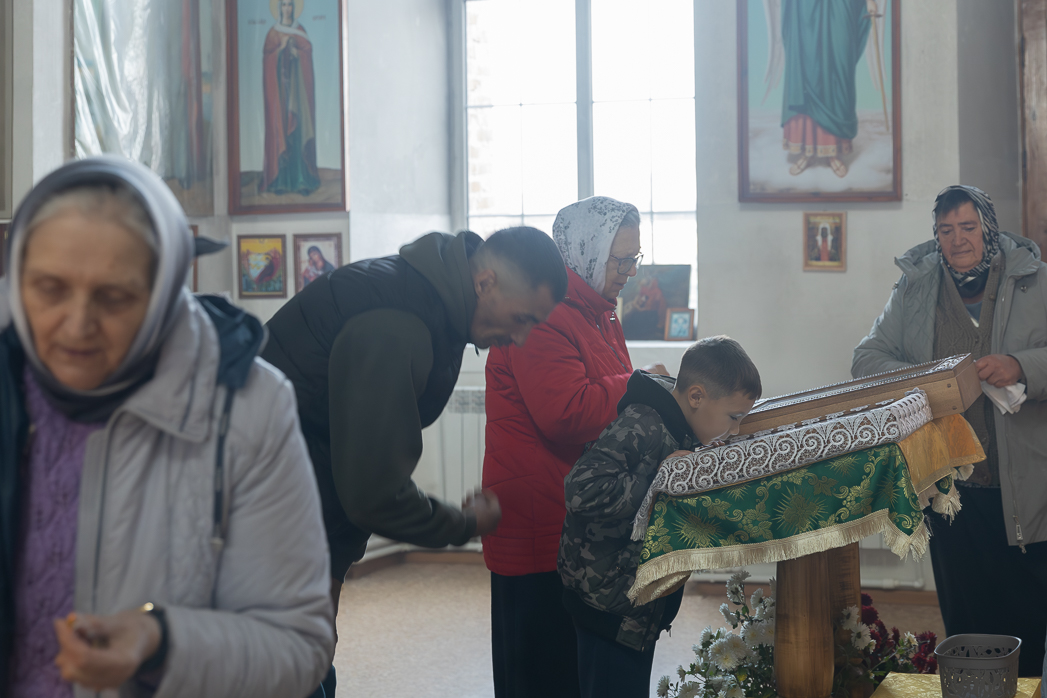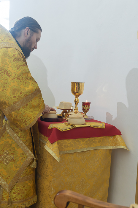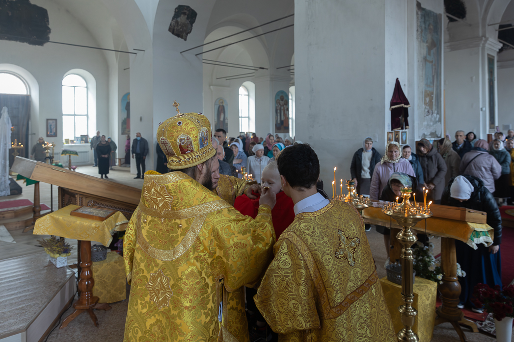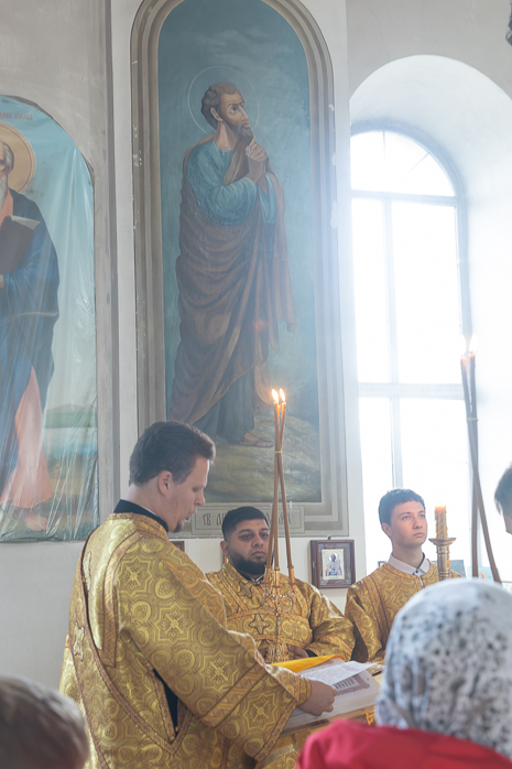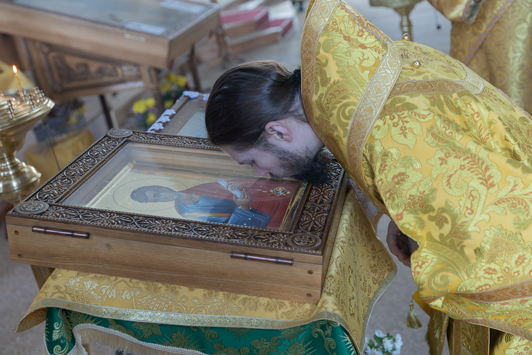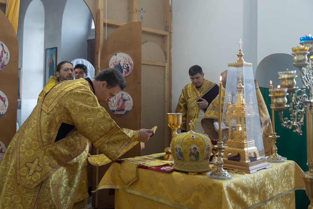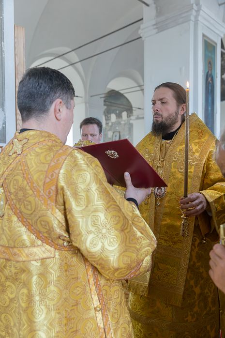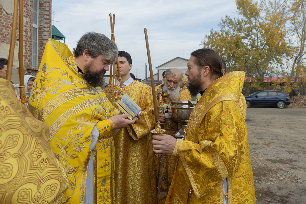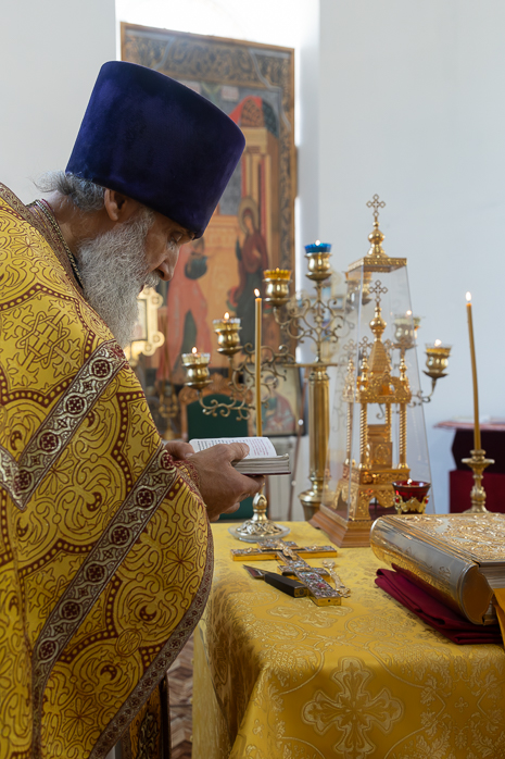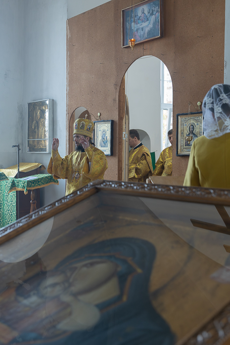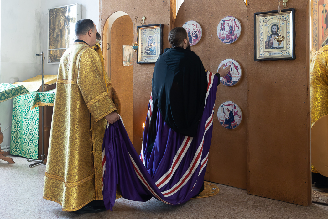 Его Преосвященству сослужили: благочинный Калачеевского церковного округа протоиерей Евгений Бей и настоятель храма Преображения Господня села Заброды протоиерей Евгений Сорокин.