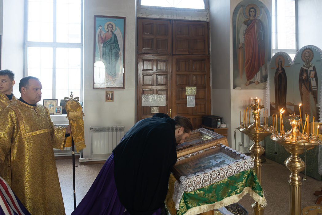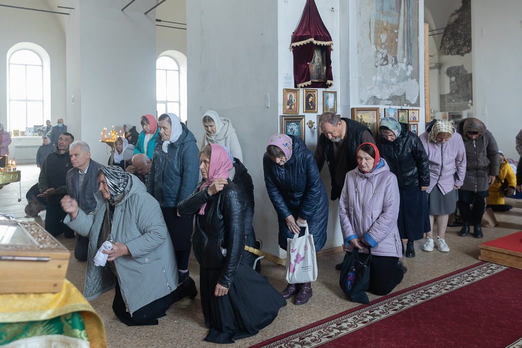 На сугубой ектении были произнесены особые прошения: «...о еже прияти молитвы нас недостойных рабов Твоих в сию годину испытания, пришедшую на Русь Святую...». Затем епископ Дионисий вознес молитву о Святой Руси. По благословению Святейшего Патриарха Московского и всея Руси Кирилла эта молитва возносится во всех храмах Русской Православной Церкви.