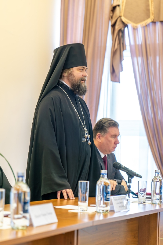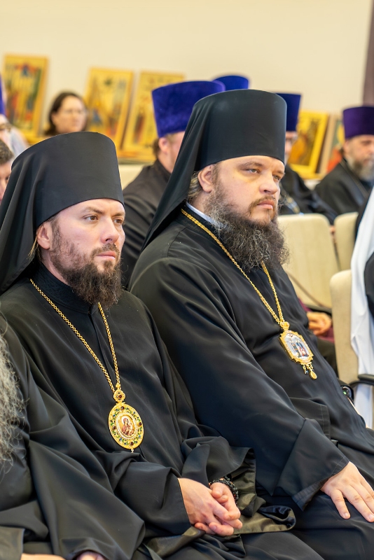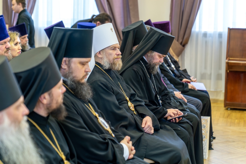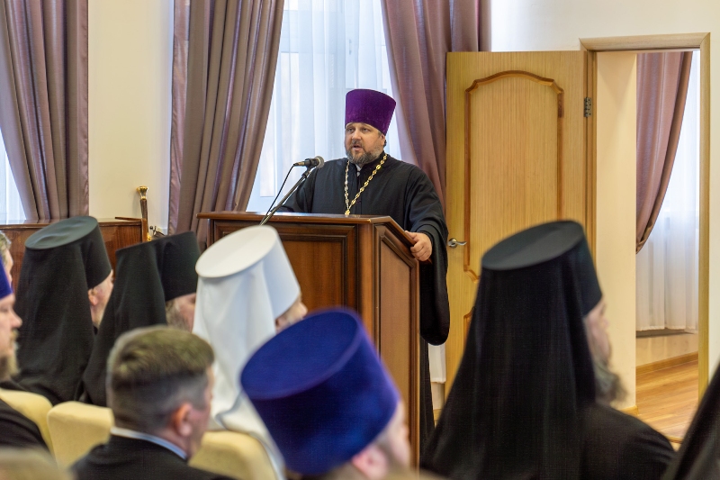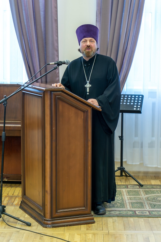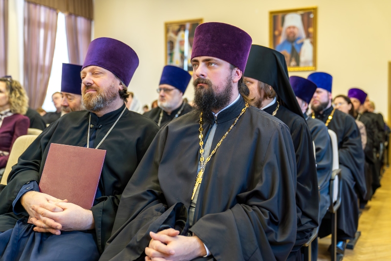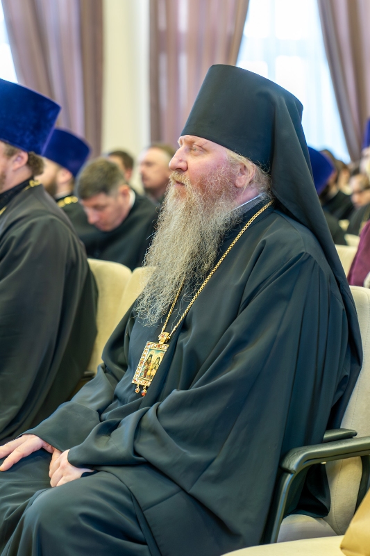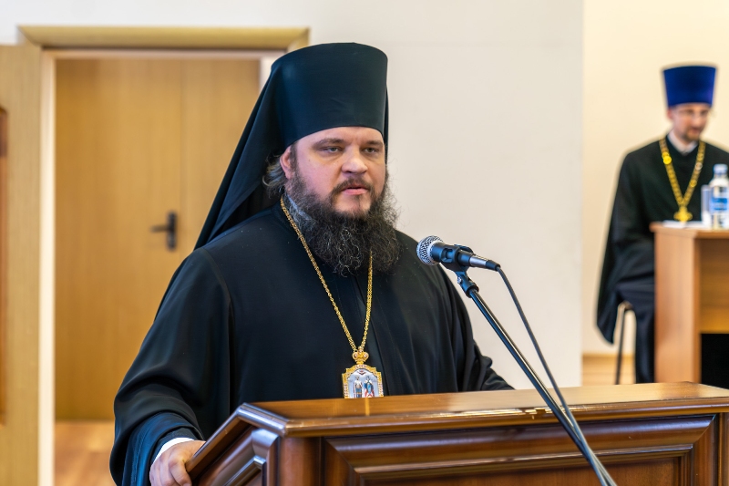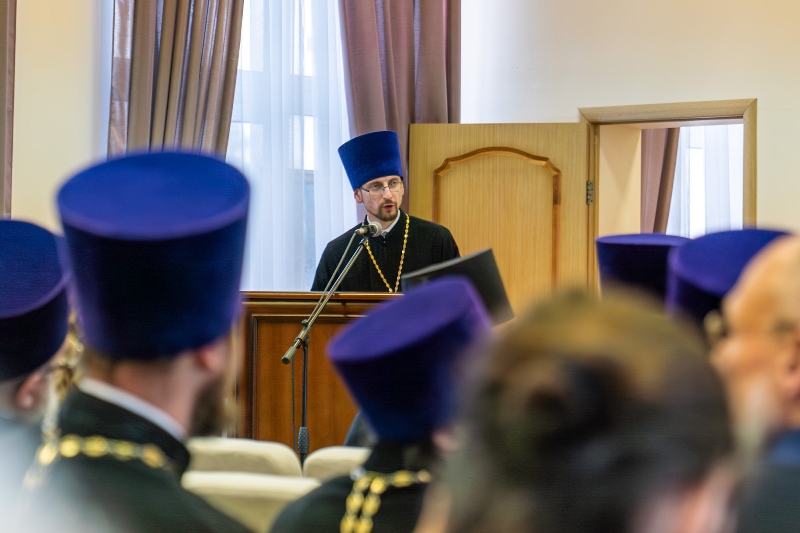 Приветствие от ректора Санкт-Петербургской Духовной Академии епископа Петергофского Силуана огласил ректор Воронежской духовной семинарии иерей Роман Ткачев.