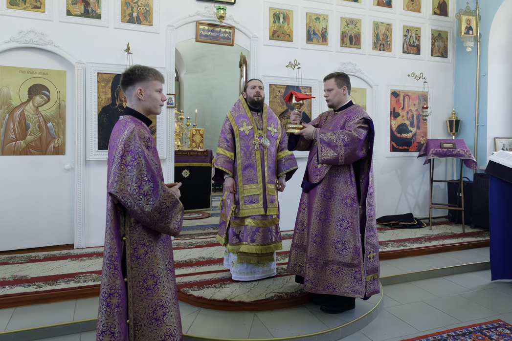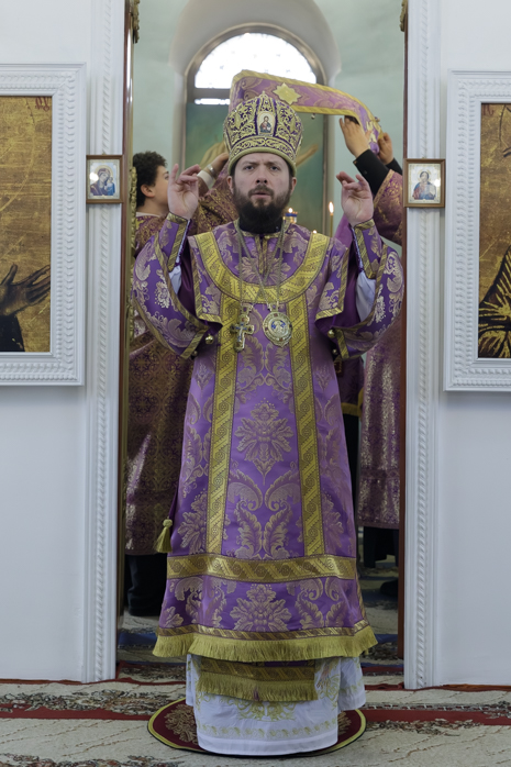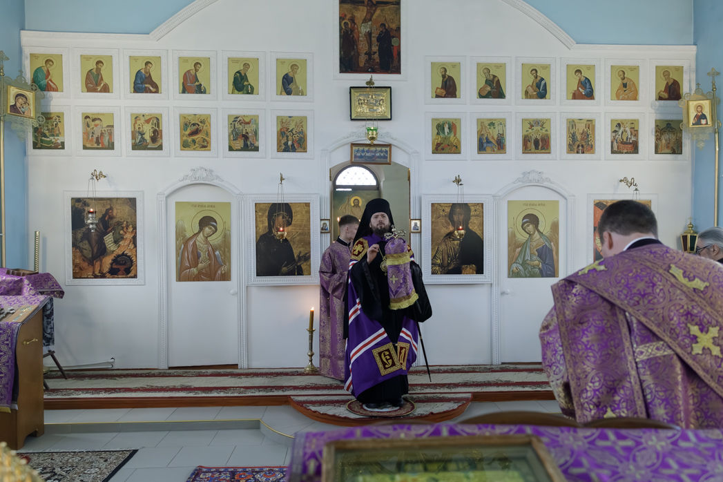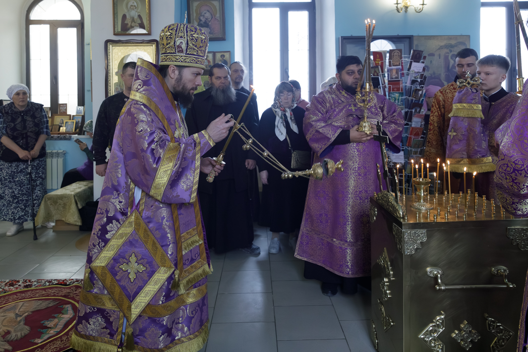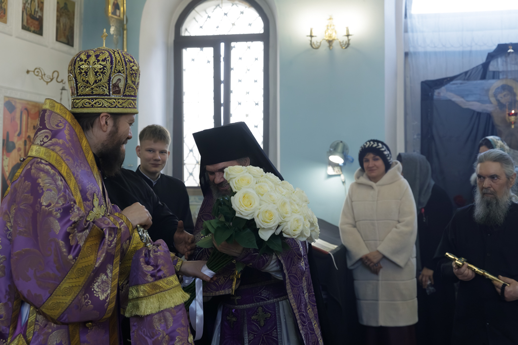 Преосвященнейшему Владыке сослужил настоятель храма Рождества Пресвятой Богородицы села Верхний Карабут иеромонах Ермоген (Шаврин).