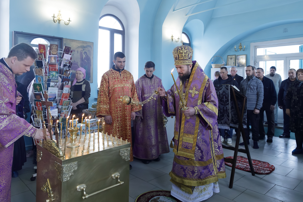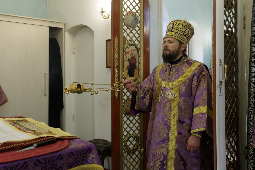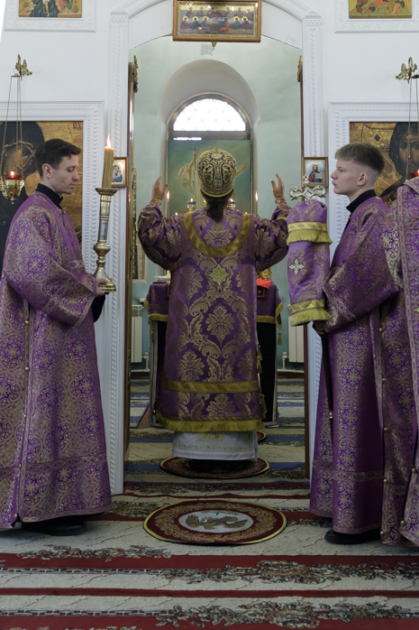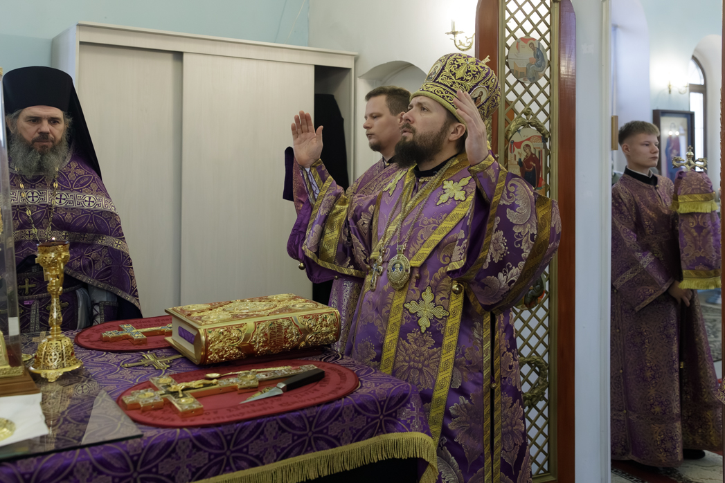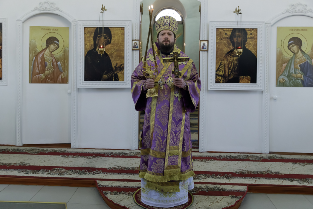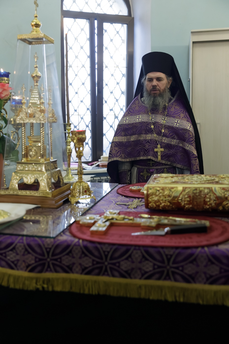 Преосвященнейшему Владыке сослужил настоятель храма Рождества Пресвятой Богородицы села Верхний Карабут иеромонах Ермоген (Шаврин).
