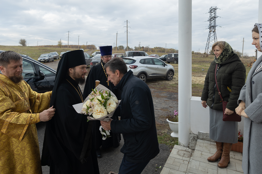 У храма Правящего Архиерея встречали: благочинный Острогожского церковного округа иерей Алексий Курганский; глава администрации Урывского сельского поселения Николай Владимирович Деревщиков, а также прихожане храма.
