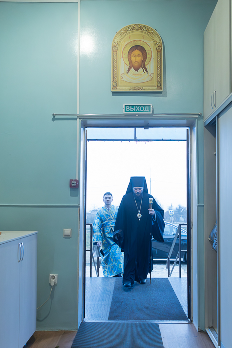 Его Преосвященству сослужили: секретарь епархиального управления, благочинный Россошанского церковного округа иерей Иаков Калинин.