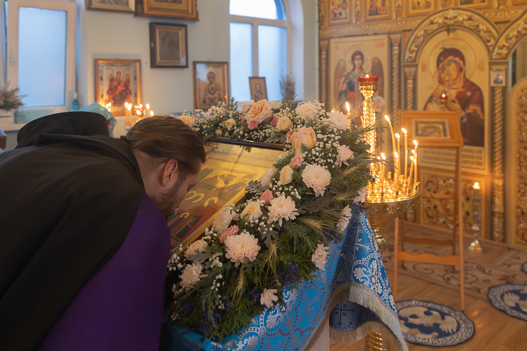 По возвращении в храм перед иконой праздника было совершено славление Пресвятой Владычице нашей Богородице и возглашено уставное многолетие Святейшему Патриарху, Правящему Архиерею, богохранимой стране нашей и всем православным христианам.