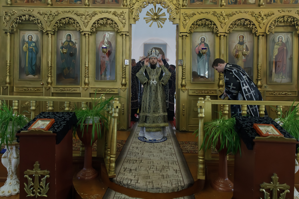 На сугубой ектении были вознесены особые прошения, епископ Дионисий вознес молитву о Святой Руси.