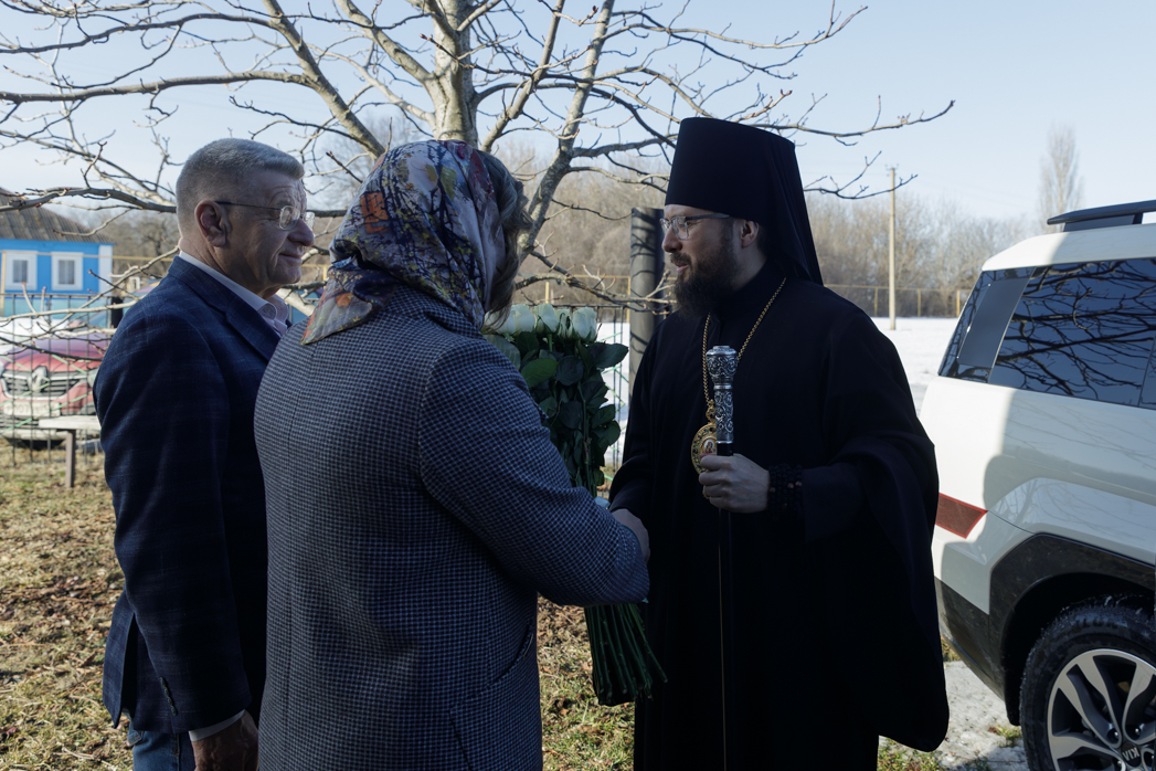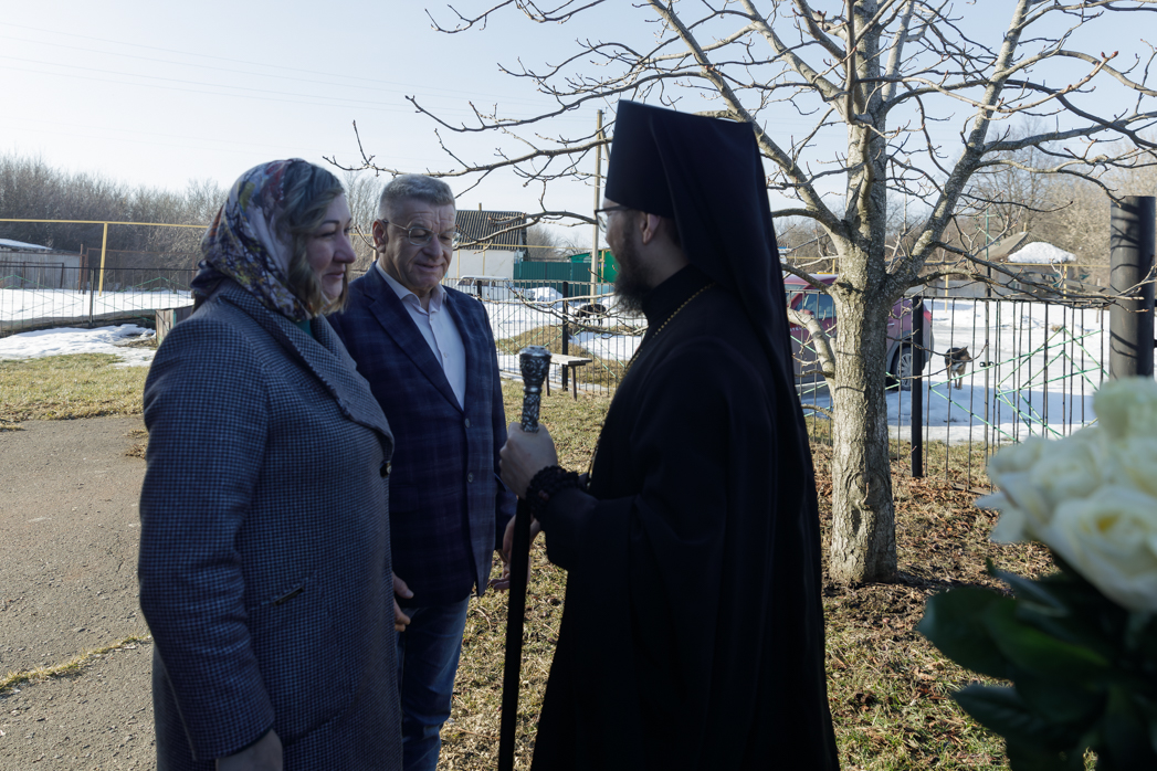 У храма Правящего Архиерея встречали: благочинный Острогожского церковного округа иерей Алексий Курганский, глава администрации Шубинского сельского поселения Ольга Сергеевна Рыбалкина и генеральный директор ЗАО «Острогожсксадпитомник» Николай Иванович Гапоненко.
