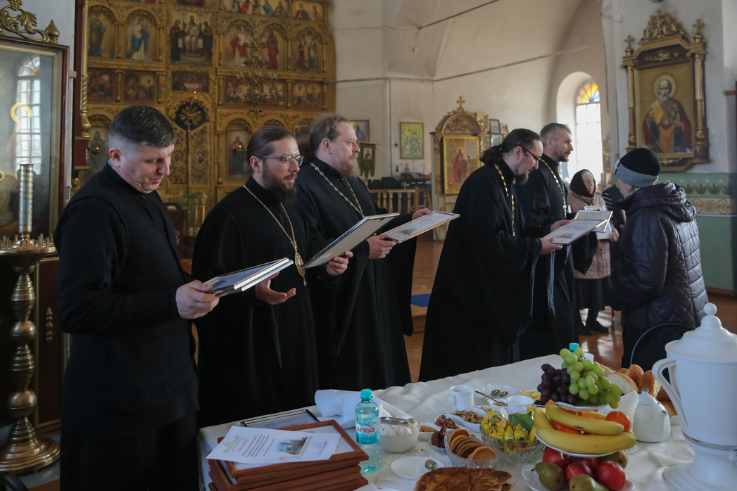 Затем с приветственным словом к Архипастырю обратился настоятель храма протоиерей Алексий Масалыкин. Священнослужитель поблагодарил епископа Дионисия за духовную радость совместного молитвенного общения и преподнес Владыке букет цветов.