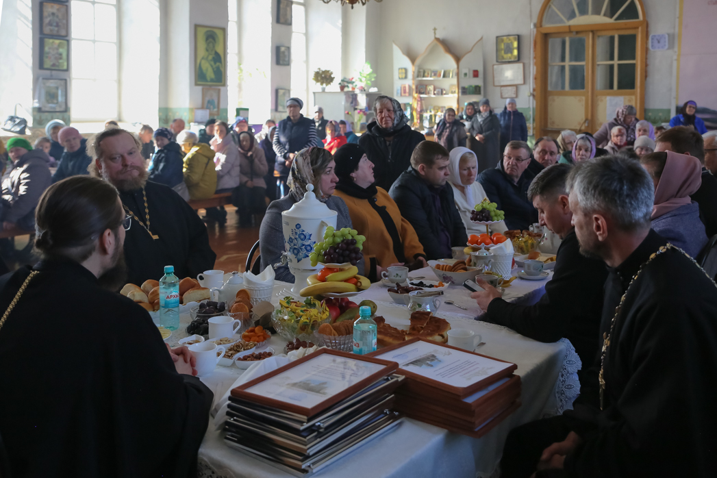 Далее в храме, за чаепитием, состоялась беседа Преосвященнейшего Дионисия, епископа Россошанского и Острогожского, с прихожанами данного и соседних приходов, прибывшими на богослужение. Владыка Дионисий подробно ответил на все интересующие присутствующих вопросы, что сделало встречу особенно плодотворной и запоминающейся для всех ее участников.