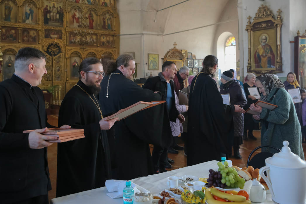 В свою очередь, прихожане храма обратились к епископу Дионисию со словами благодарности за совершенный визит и преподнесли в дар икону Его небесного покровителя преподобного Дионисия Радонежского.