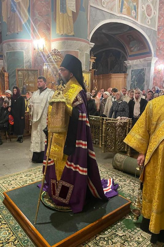 На великой вечерне епископ Дионисий возглавил праздничную литию – прилежное моление о всем мире. При совершении полиелея было совершено полное каждение храма.