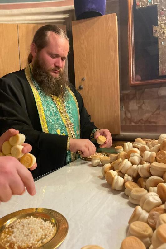 Во время чтения священнослужителями канонов на утрени епископ Дионисий совершил помазание духовенства и мирян освященным елеем.