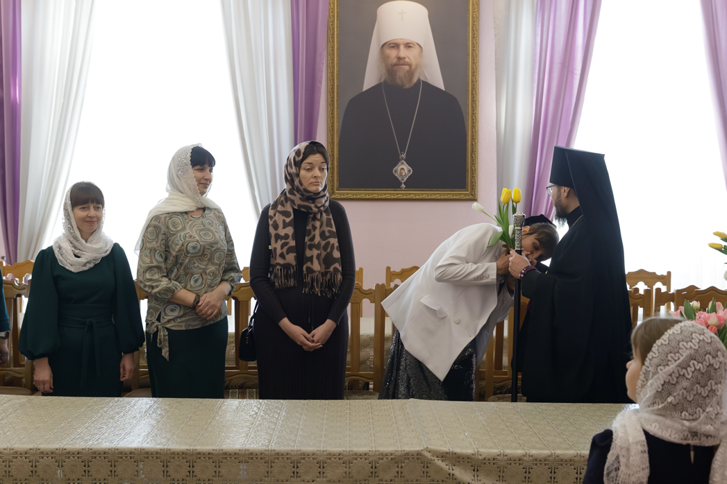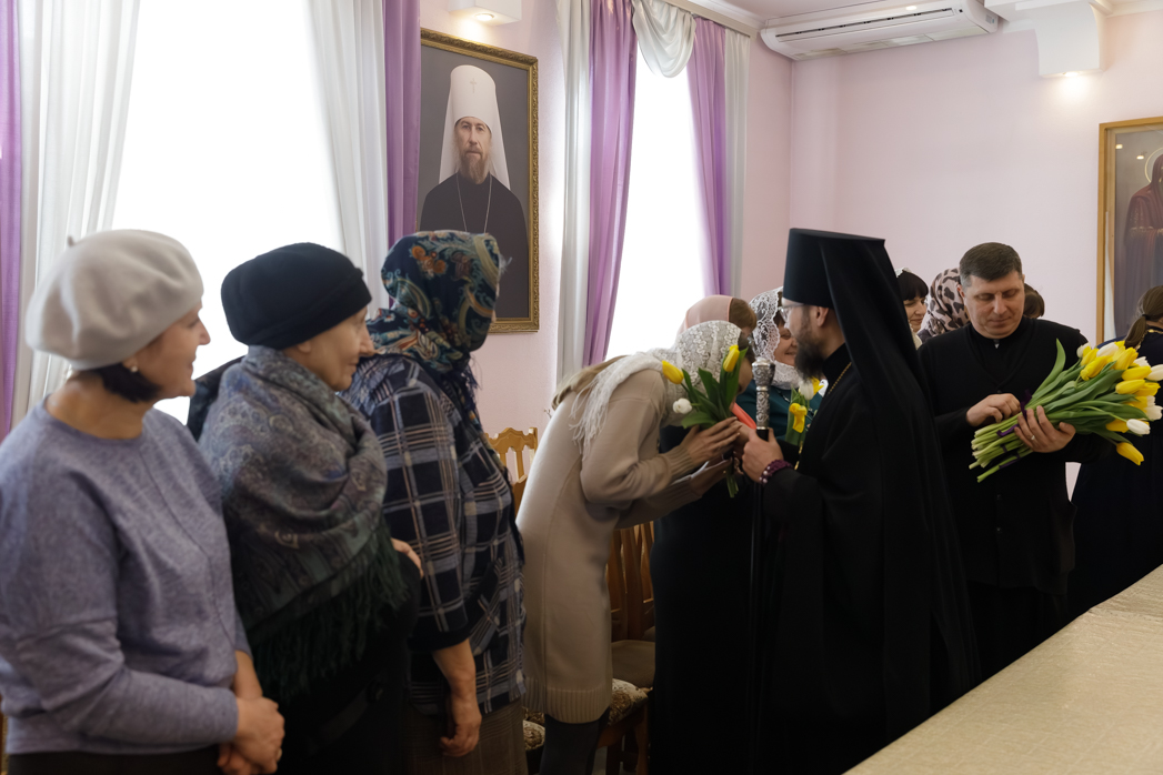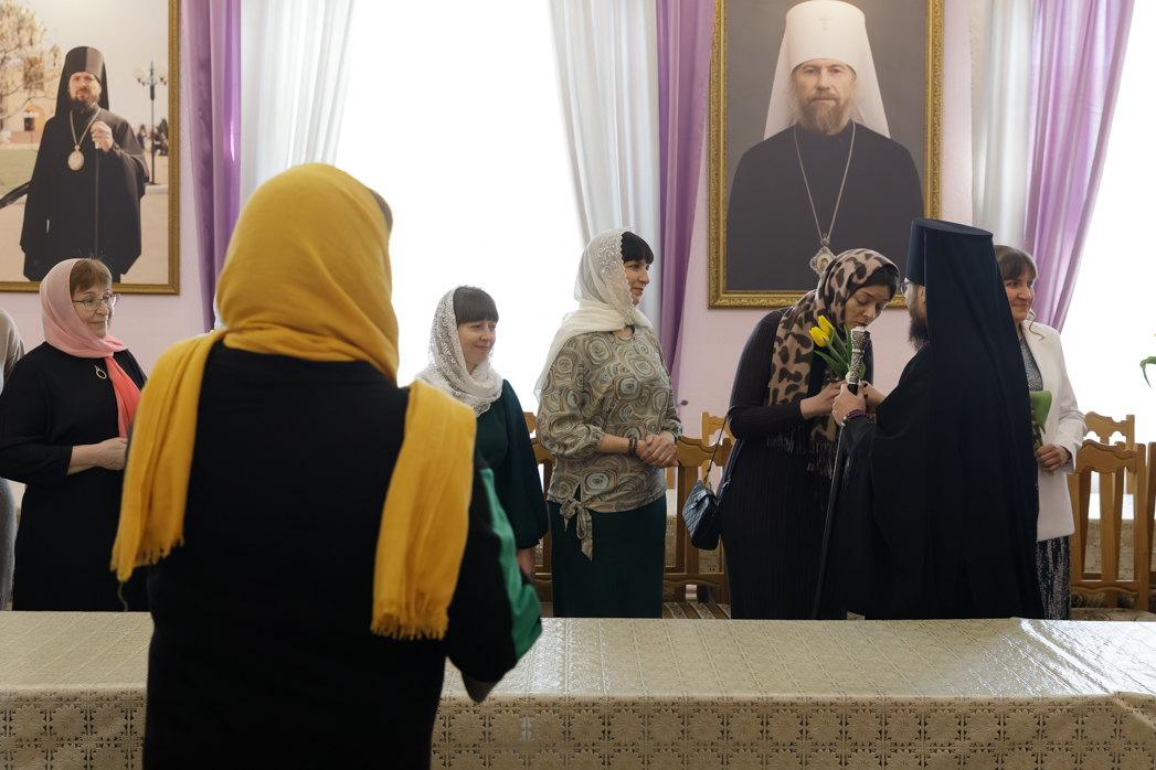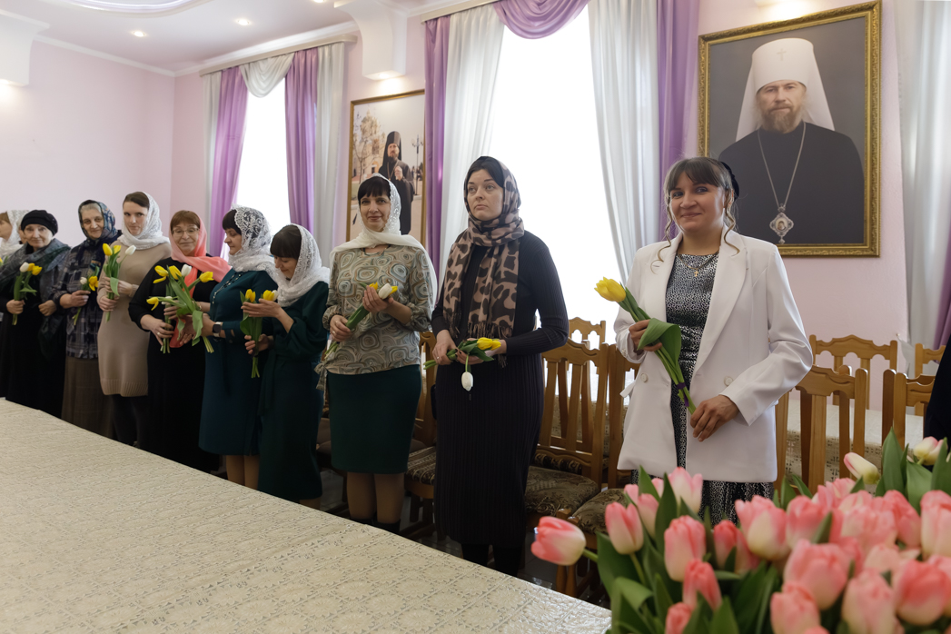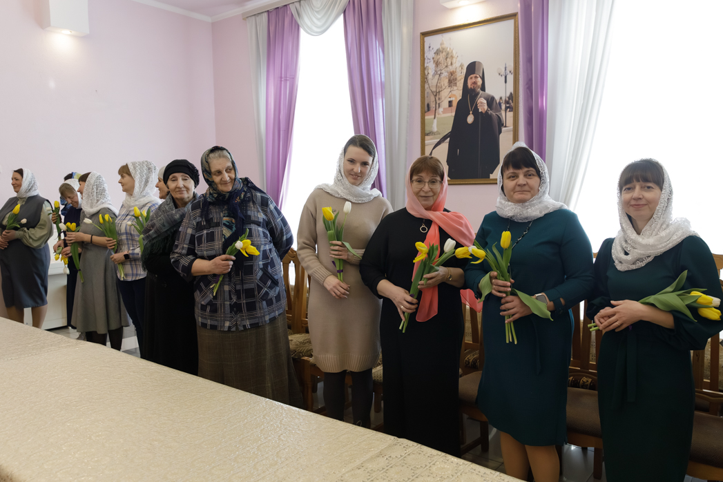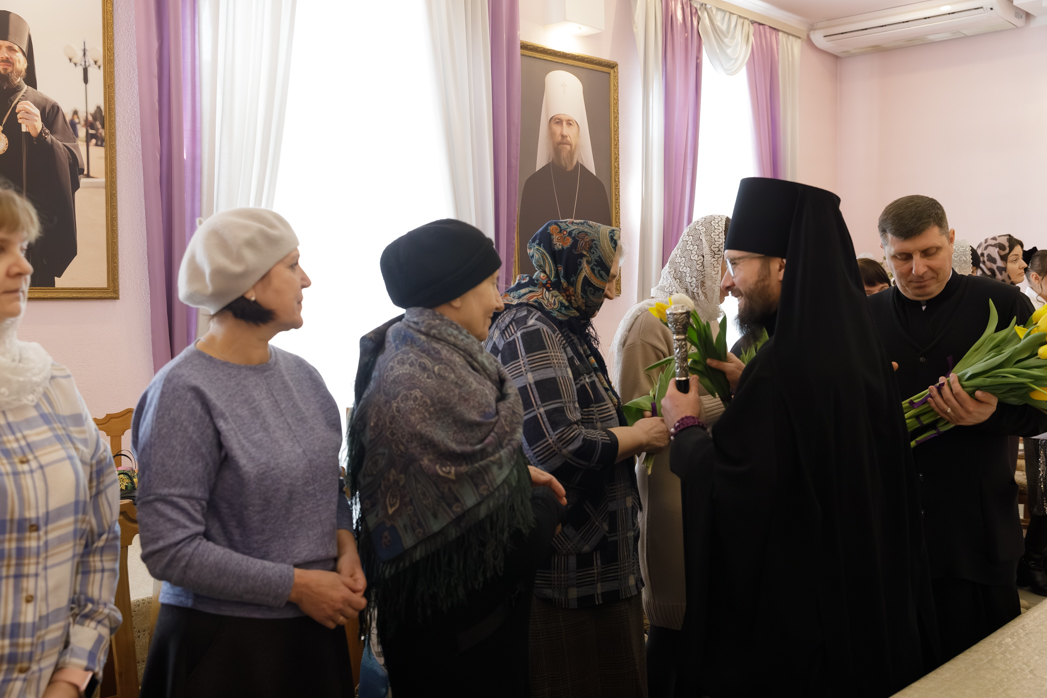 Преосвященнейший Архипастырь сердечно поблагодарил женщин за добросовестные труды и ответственное отношение к возложенным обязанностям, пожелал крепкого здоровья и Божией помощи в жизни. Каждой участнице встречи епископ Дионисий вручил весенние цветы.