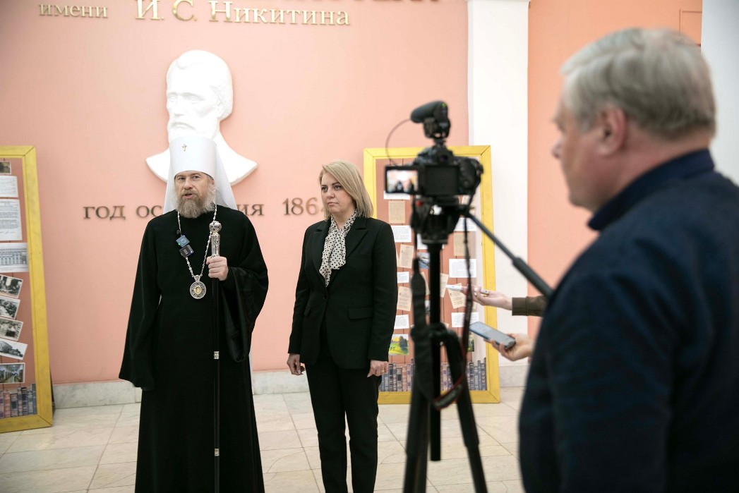 Перед началом официальной части митрополит Воронежский и Лискинский Леонтий и министр культуры Воронежской области Мария Александровна Мазур ответили на вопросы журналистов.