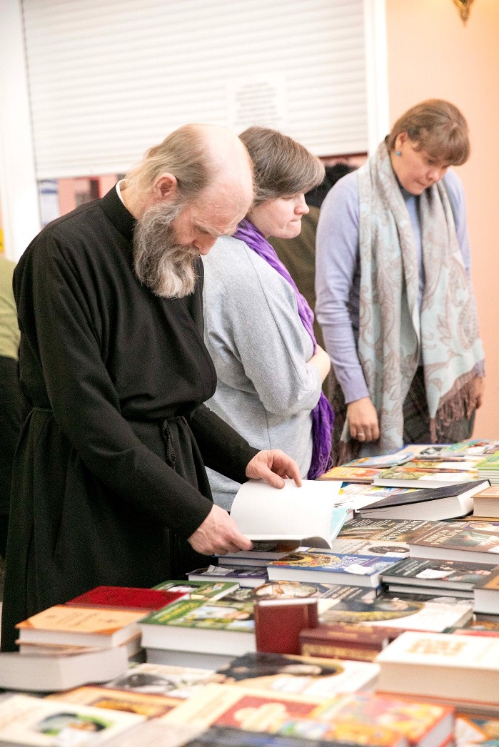 В фойе первого этажа гостей встречала книжная выставка-ярмарка «Радость слова», на которой были представлены издания по истории Православной Церкви, богословию и церковному искусству, святоотеческая литература, книги для детей и юношества, о семейной жизни и воспитании. Выставка пользовалась большим интересом у посетителей.