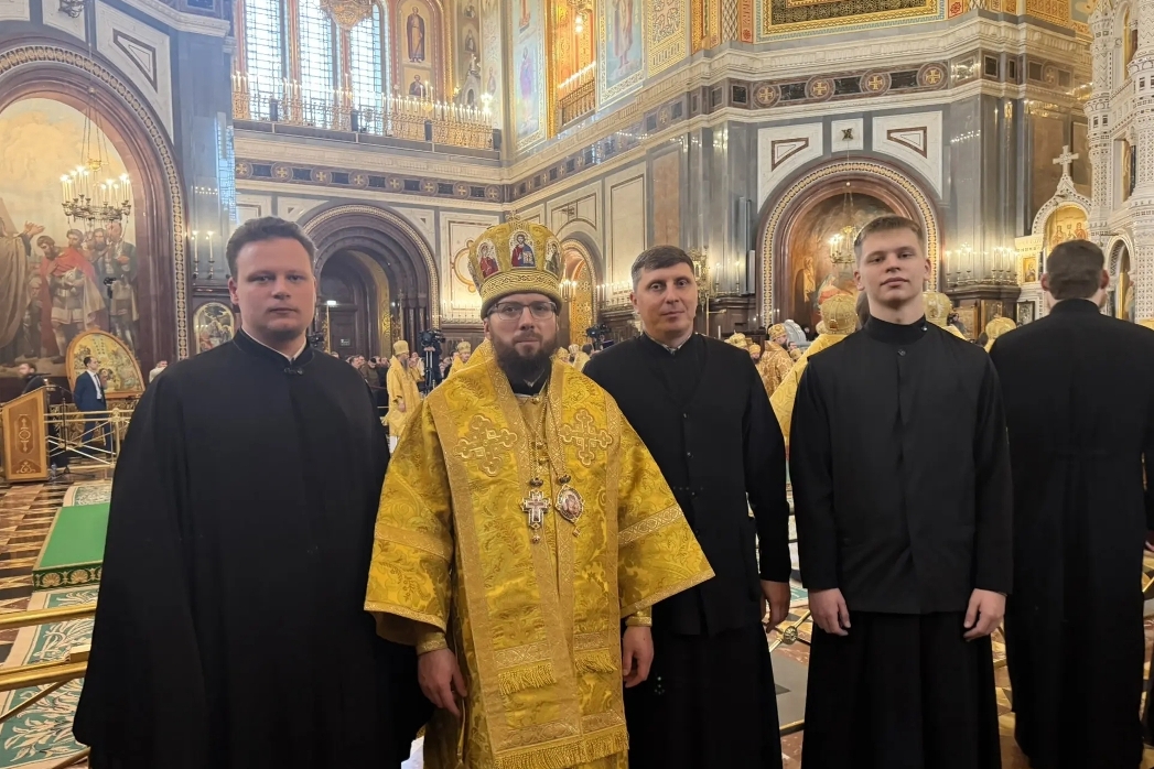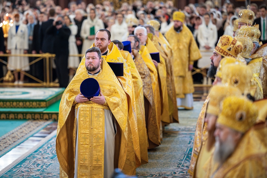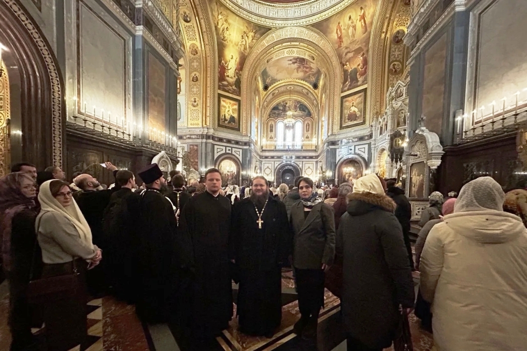 Также Предстоятелю Русской Церкви сослужили: протопресвитер Владимир Диваков, секретарь Патриарха Московского и всея Руси по г. Москве; протоиерей Михаил Рязанцев, ключарь Храма Христа Спасителя; игумен Иоанн (Рубин), заместитель председателя Синодального отдела религиозного образования и катехизации; протоиерей Михаил Потокин, председатель Синодального отдела по церковной благотворительности и социальному служению; протоиерей Димитрий Григорьянц, руководитель сектора православных образовательных организаций Синодального отдела религиозного образования и катехизации; иерей Кирилл Марковский, председатель Синодального отдела по тюремному служению; иеромонах Онисим (Бамблевский), председатель отдела религиозного образования Московской (городской) епархии; иеромонах Геннадий (Войтишко), руководитель сектора приходского просвещения Синодального отдела религиозного образования и катехизации; иерей Феодор Лукьянов, председатель Патриаршей комиссии по вопросам семьи, защиты материнства и детства; члены Оргкомитета Международных Рождественских чтений; сотрудники Синодального отдела религиозного образования и катехизации и руководители епархиальных отделов религиозного образования и катехизации в священном сане; духовенство г. Москвы.