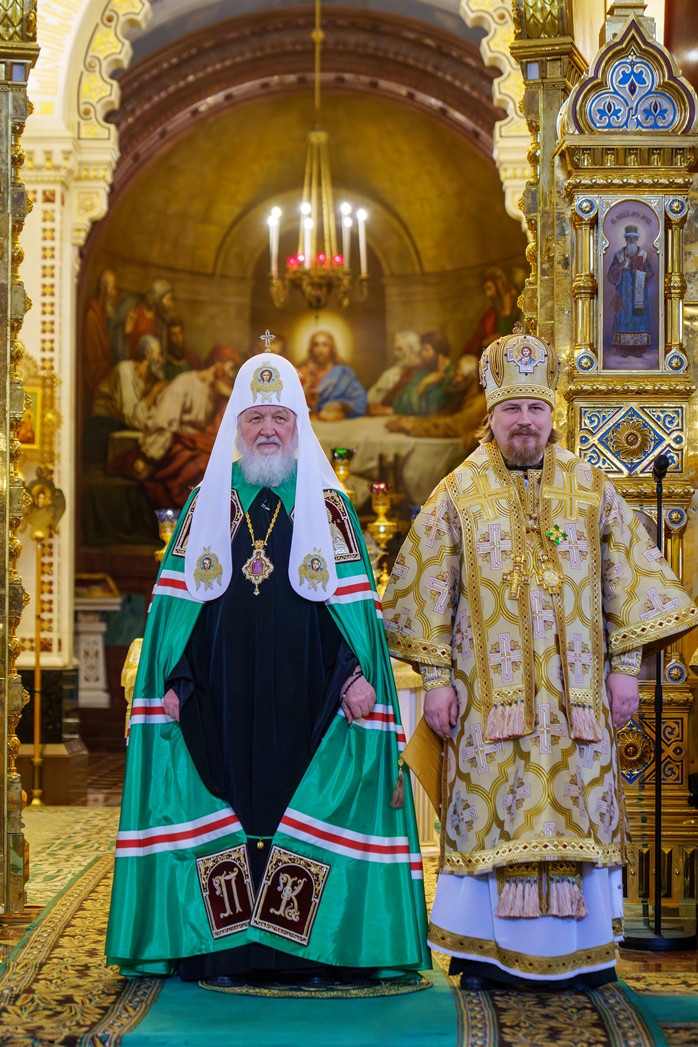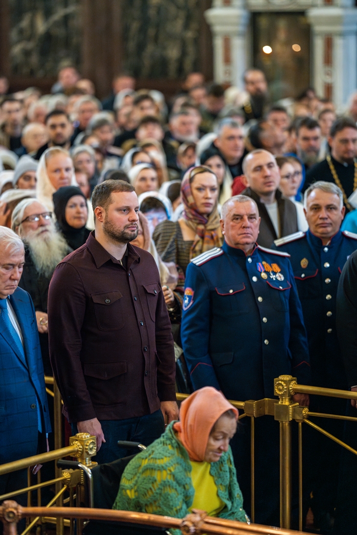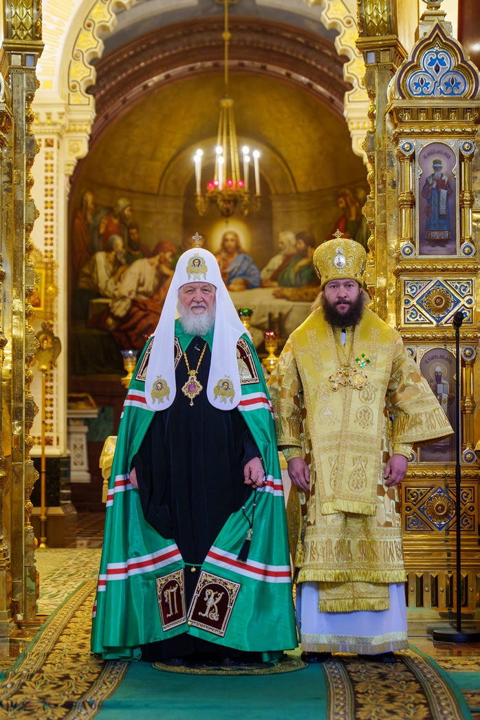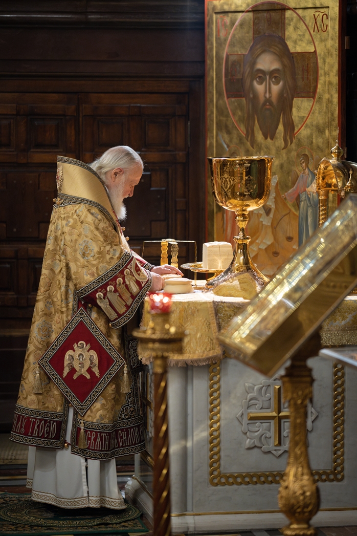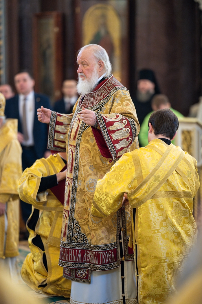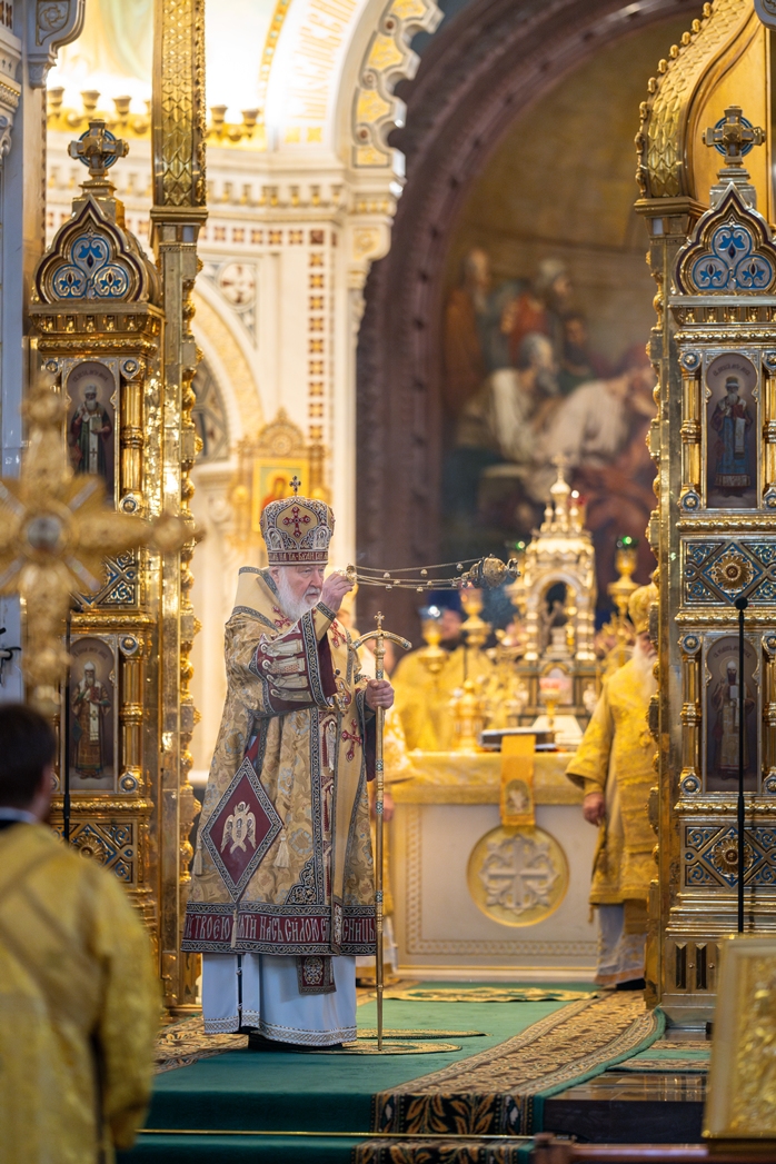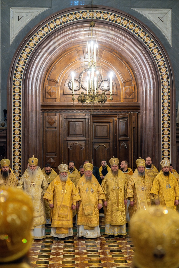 На сугубой ектении были вознесены особые прошения, Предстоятель Русской Церкви прочитал молитву о Святой Руси.