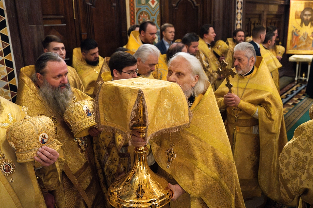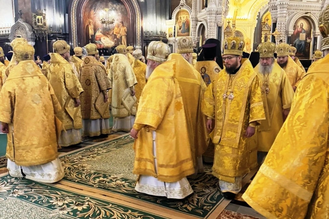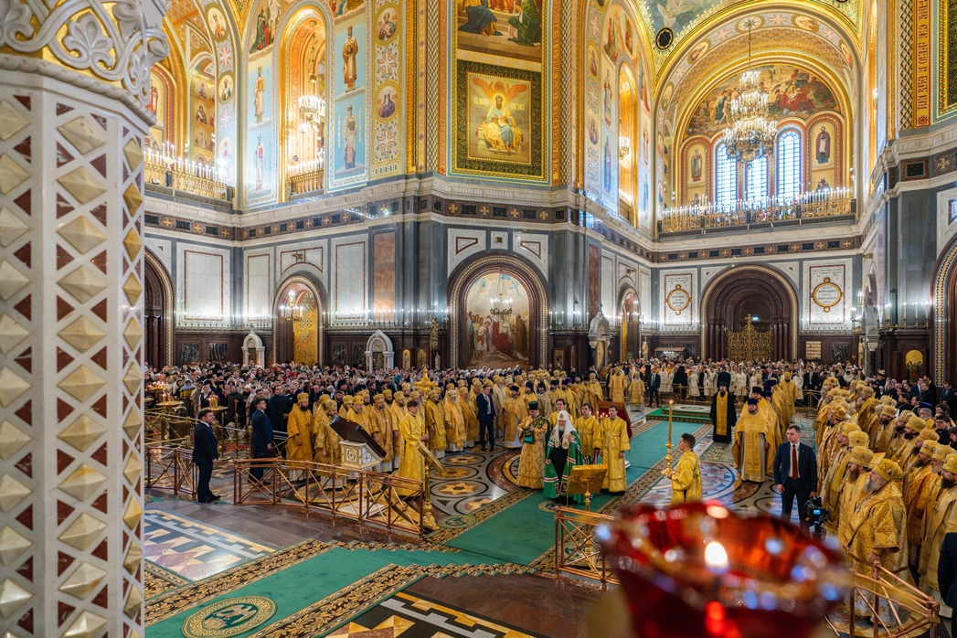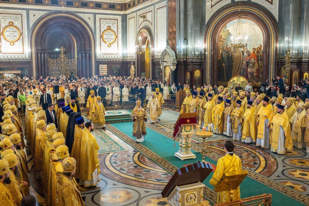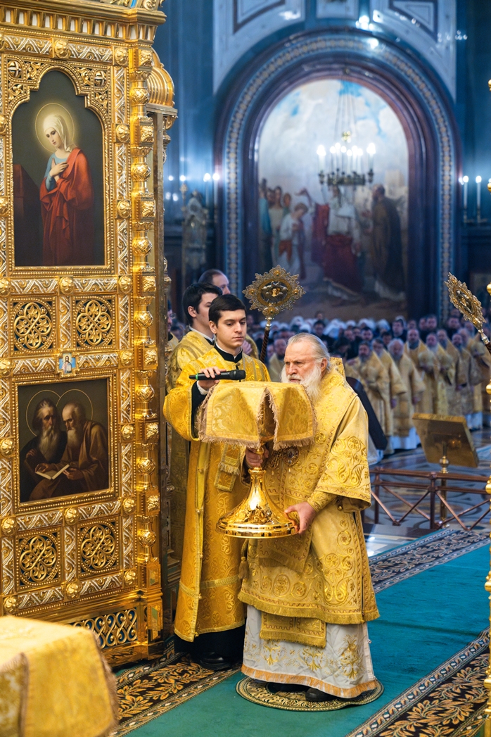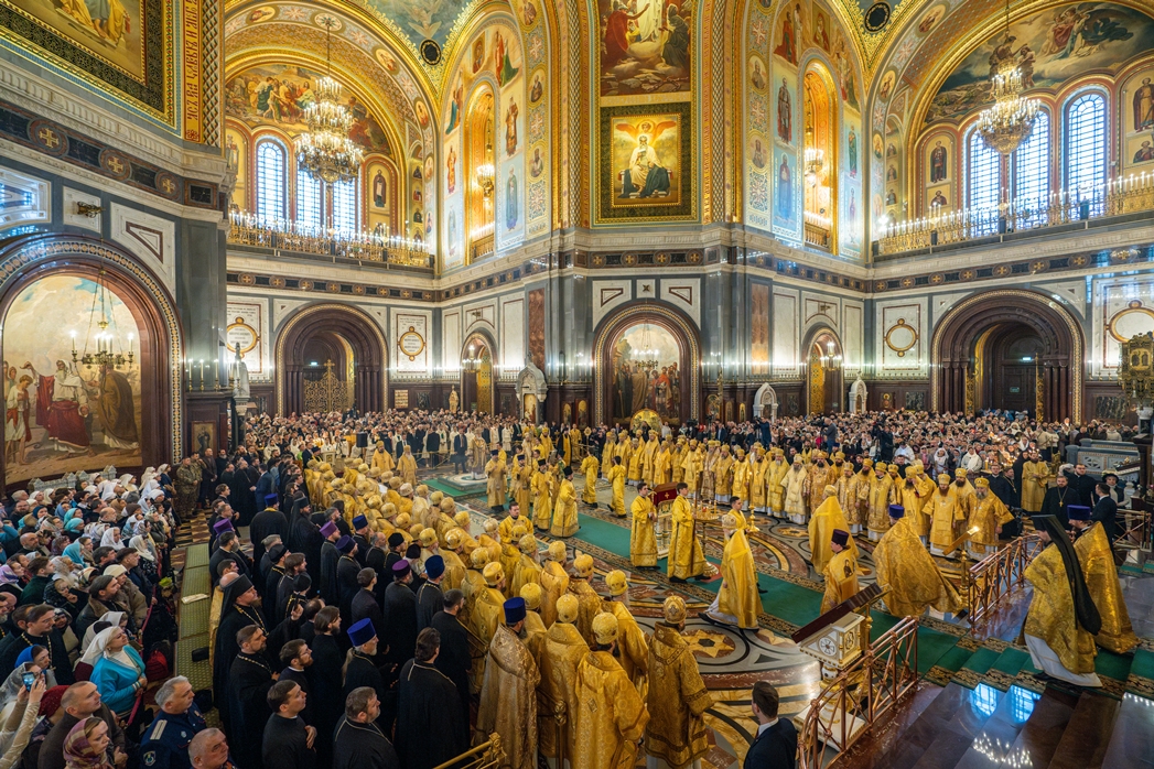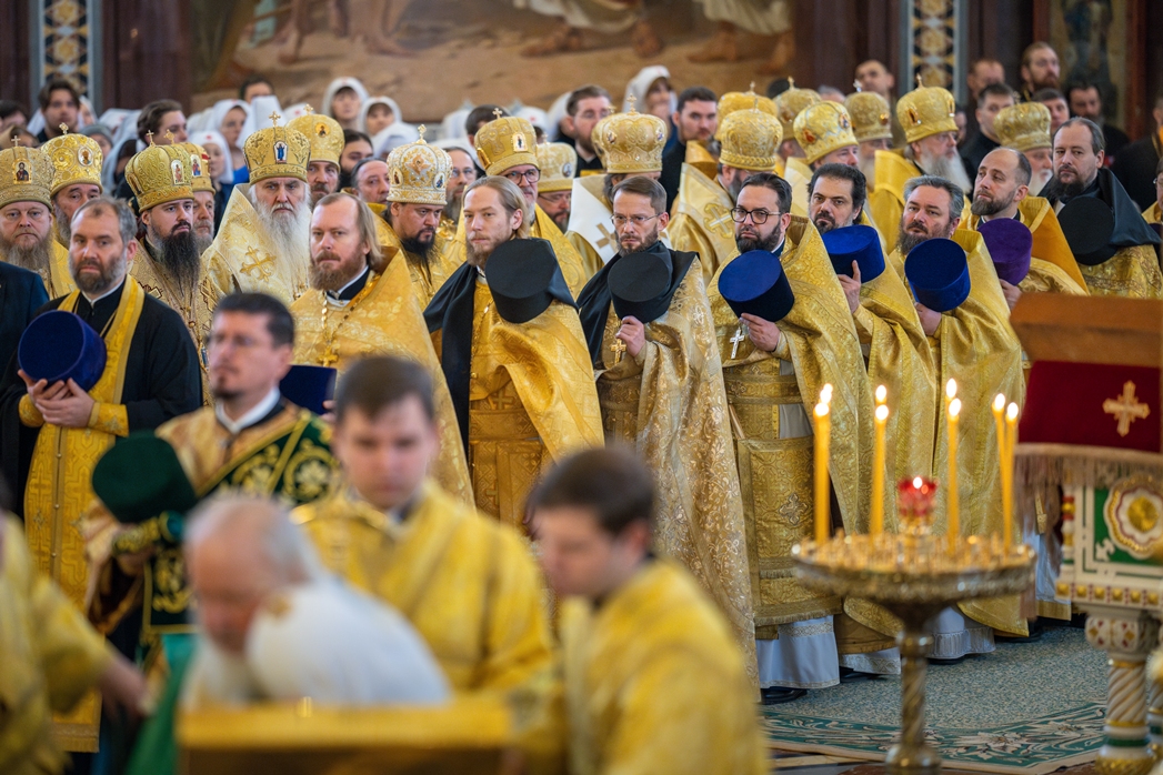 На сугубой ектении были вознесены особые прошения, Предстоятель Русской Церкви прочитал молитву о Святой Руси.