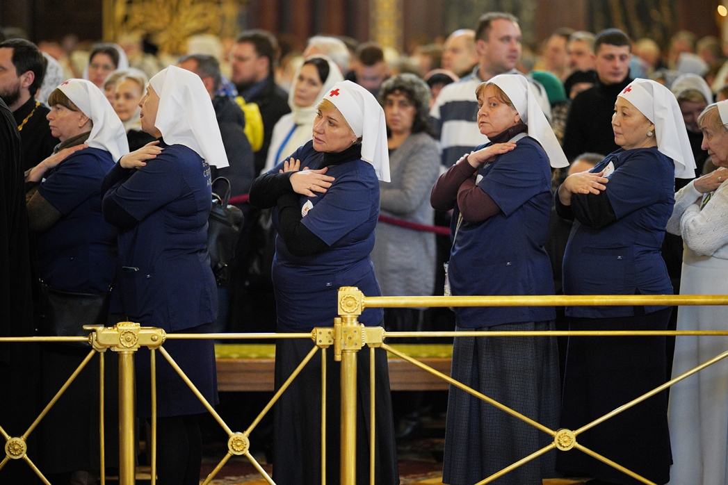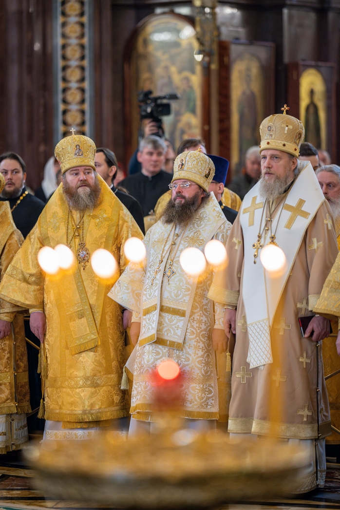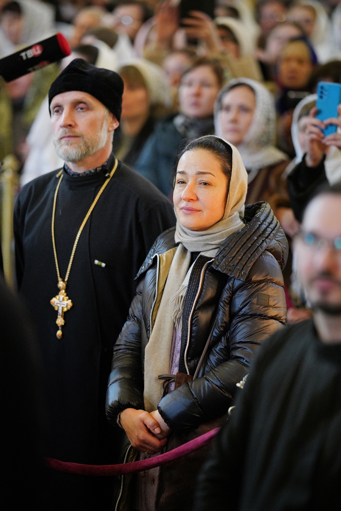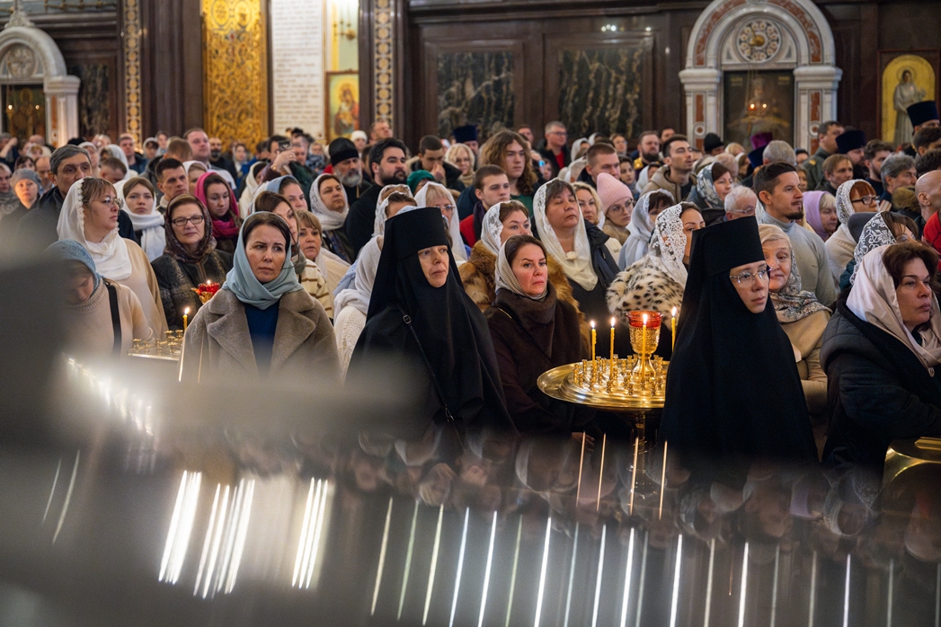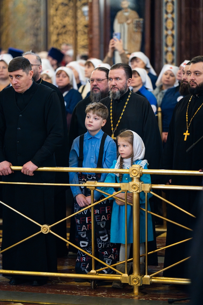 В храме молились участники XXХIV Международных Рождественских чтений, игумении женских монастырей, руководители и сотрудники синодальных учреждений, многочисленные верующие.