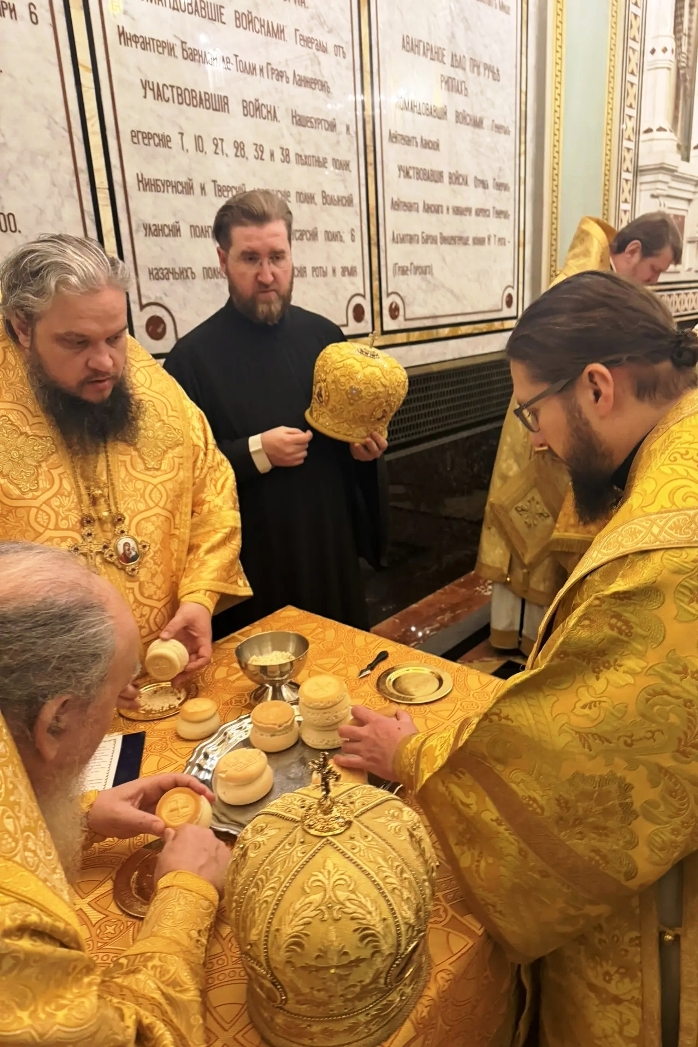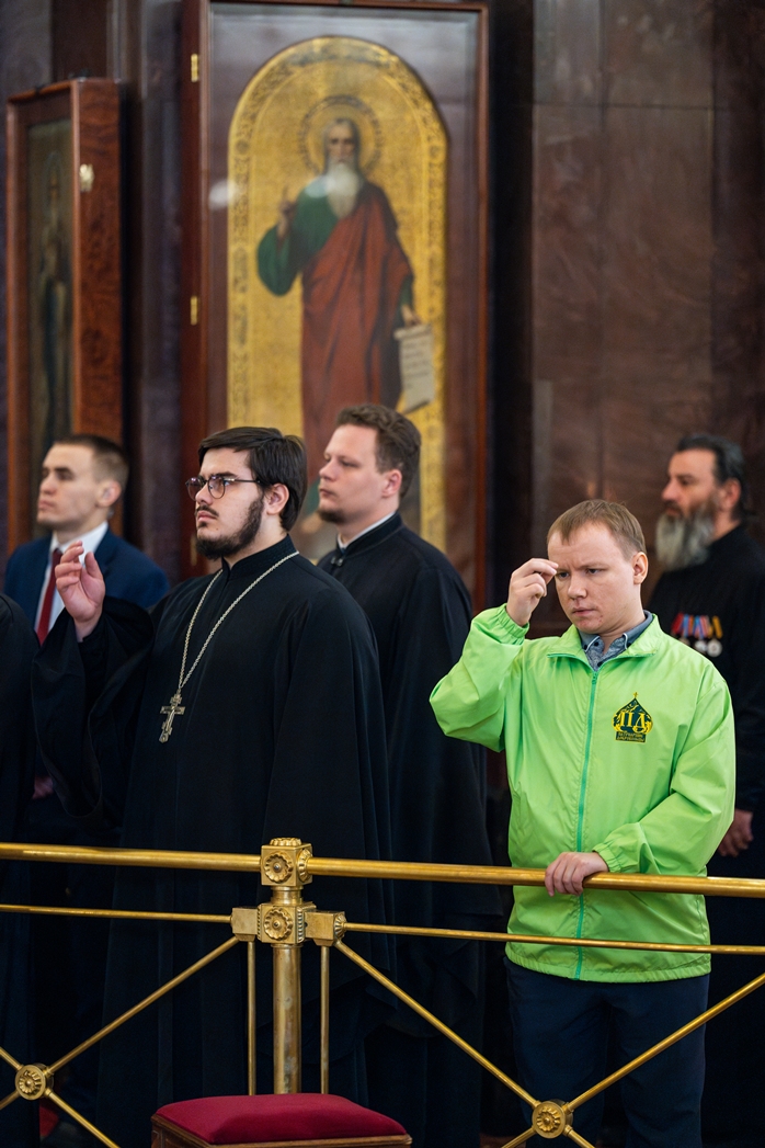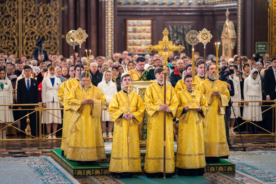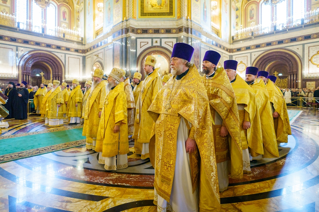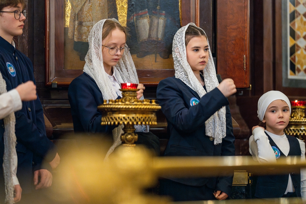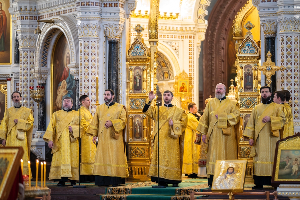 Песнопения Литургии исполнил Патриарший хор Храма Христа Спасителя (регент — И.Б. Толкачев).