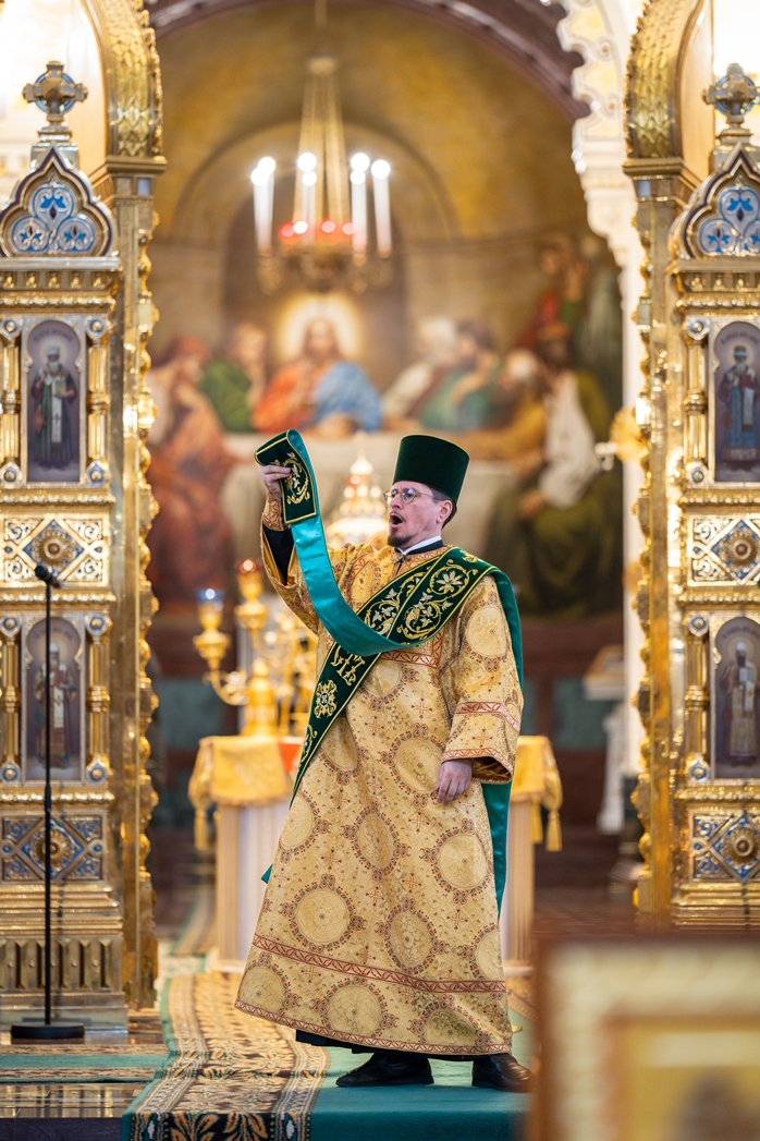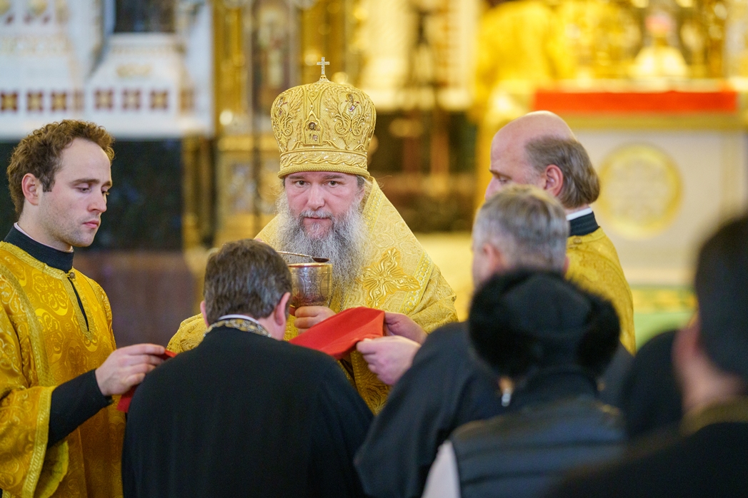 Проповедь перед причастием произнес иерей Василий Равлик, председатель отдела религиозного образования и катехизации Екатеринбургской епархии.