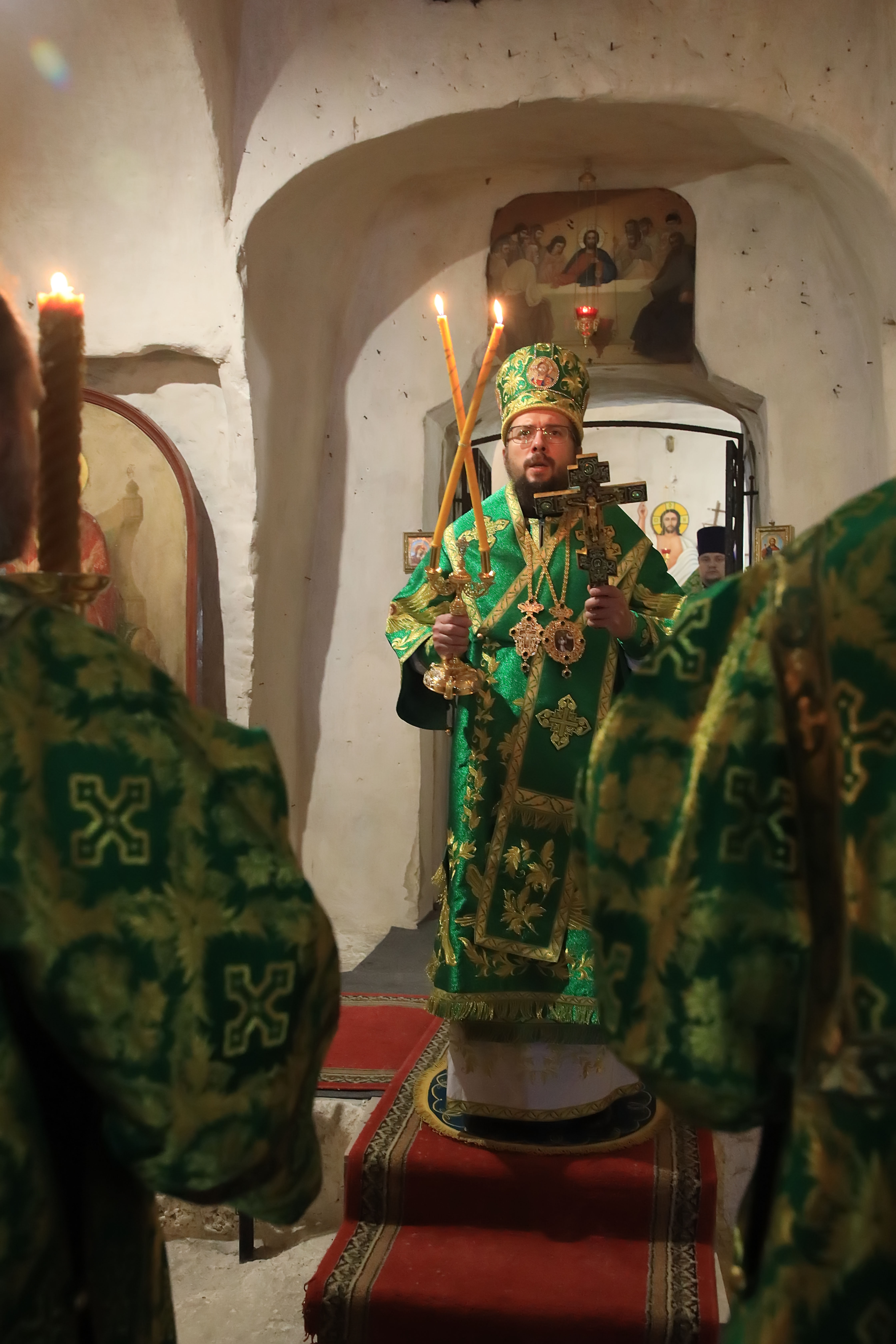 Его Преосвященству сослужили: секретарь епархиального управления иерей Иоанн Суздальцев, благочинный монастырского церковного округа игумен Илия (Ждамиров), благочинный Каменского церковного округа иерей Сергий Папин, клирики обители.