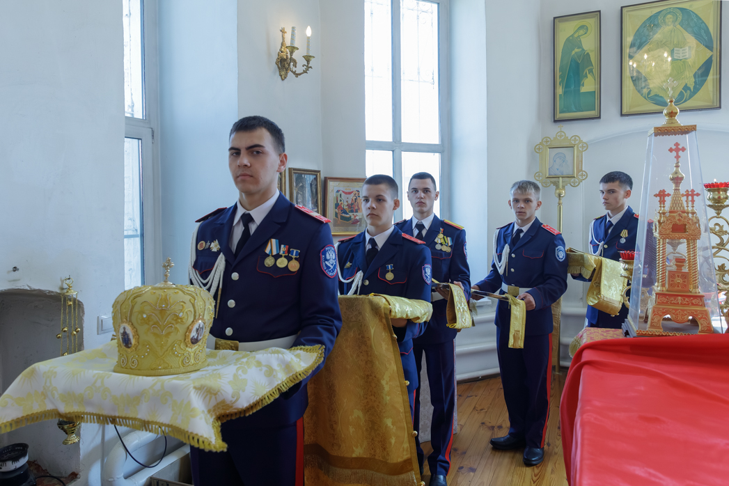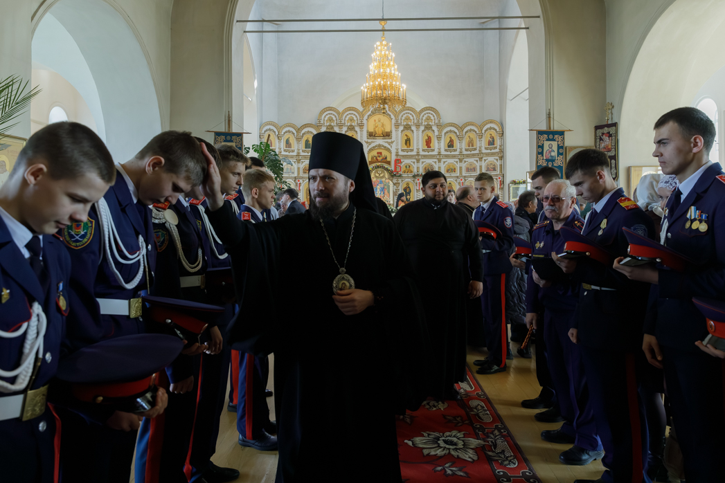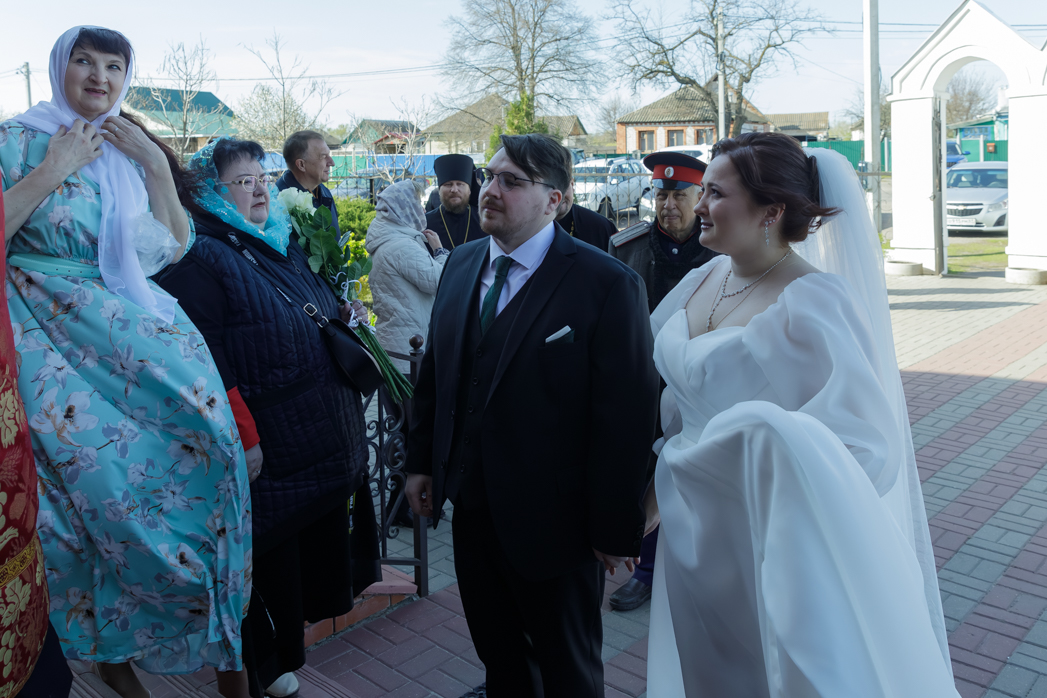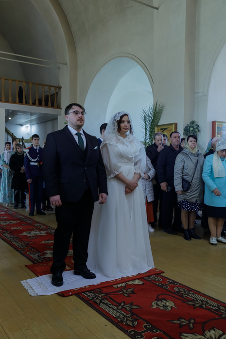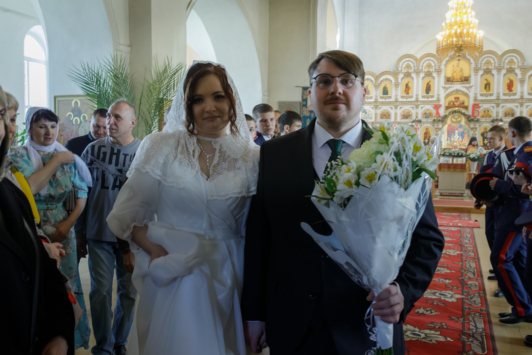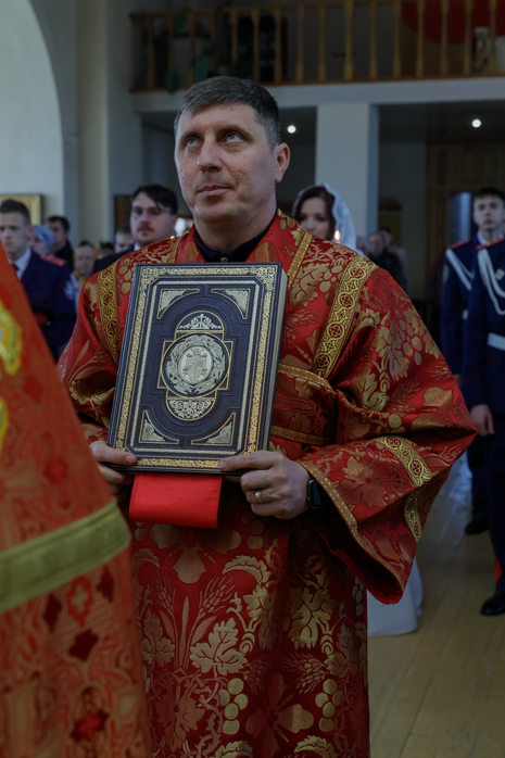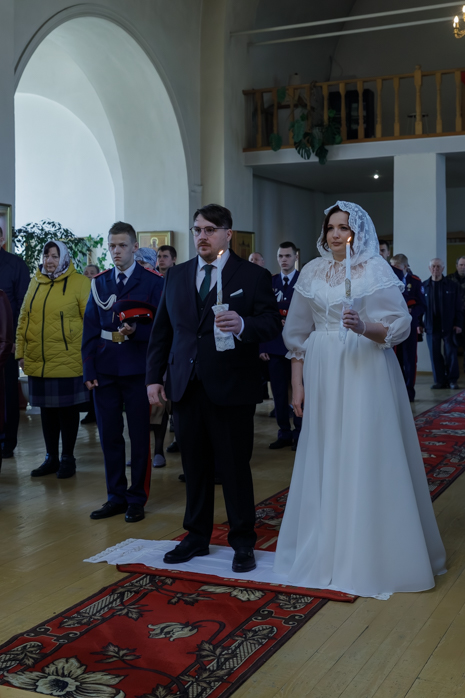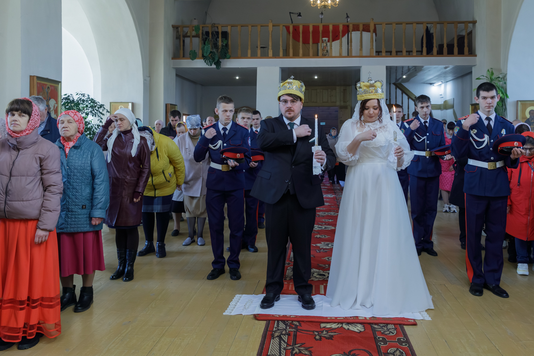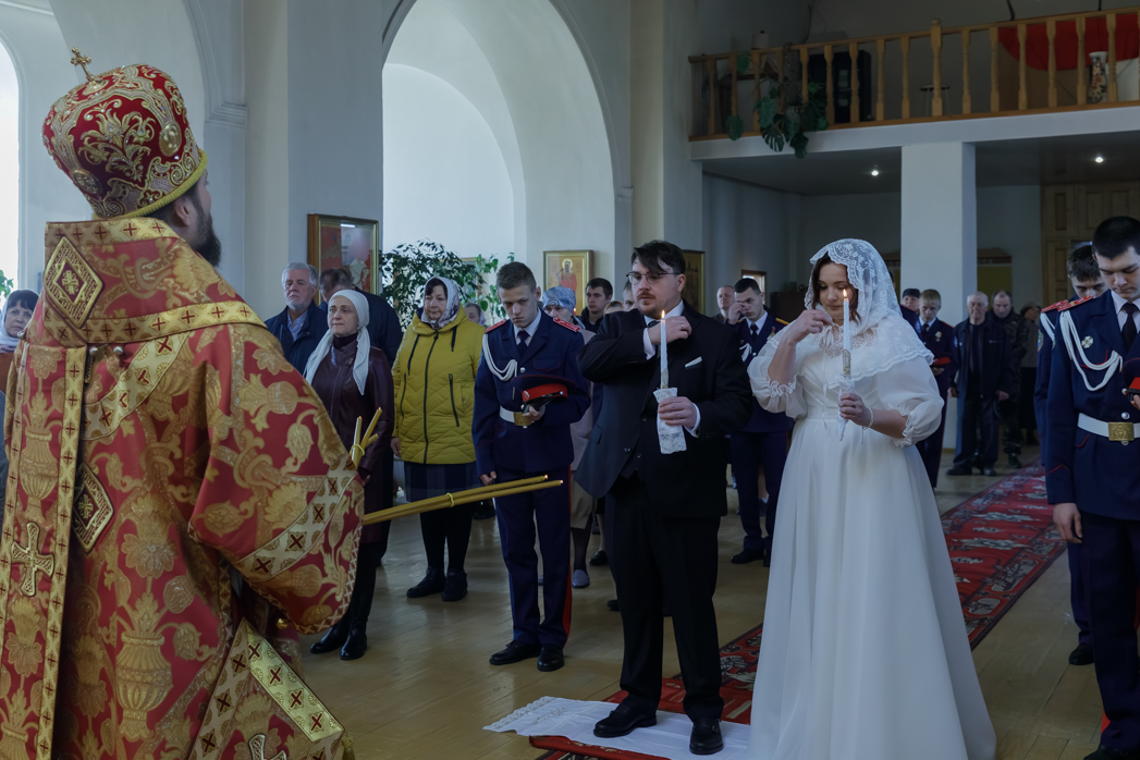 За богослужением молились брачующиеся Сергий и его избранница Татьяна, их родные и близкие, а также кадеты Верхнемамонского казачьего кадетского корпуса и прихожане храма, большинство из которых впервые смогли увидеть это красивое и торжественное Таинство, совершенное Архиереем.