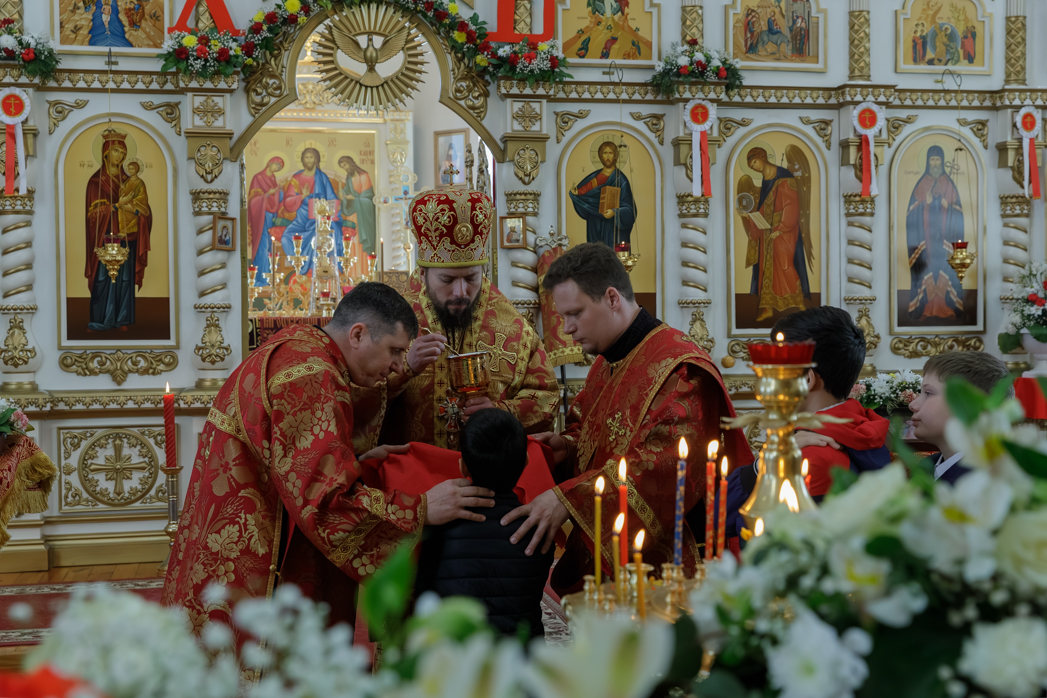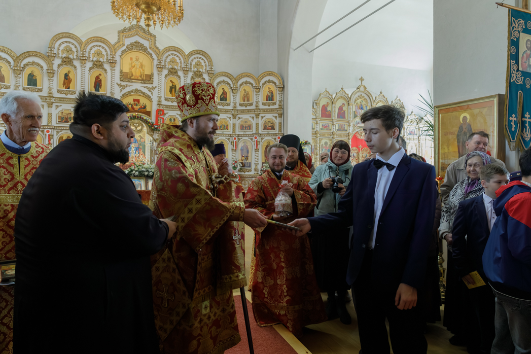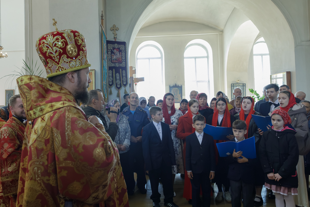 В завершении торжества епископа Дионисия и всех присутствующих поздравили с Пасхой Христовой воспитанники воскресной школы при Свято-Митрофановском храме, исполнив песнопения. По завершении выступления каждый юный исполнитель получил архипастырский пасхальный подарок.