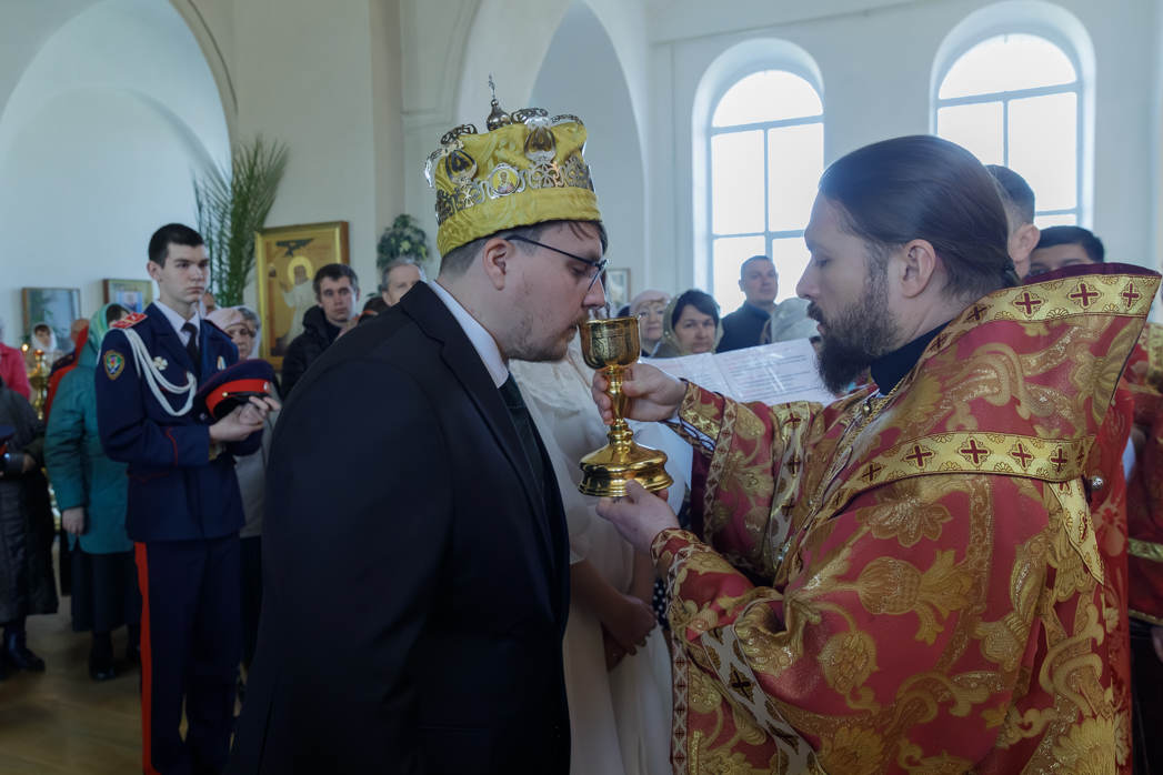 26 апреля, в Неделю 3-ю по Пасхе, святых жен-мироносиц, Преосвященнейший Дионисий, епископ Россошанский и Острогожский, совершил венчальную Божественную литургию в храме святителя Митрофана, первого епископа Воронежского, села Верхний Мамон Богучарского церковного округа. Особенностью венчальной Литургии является соединение двух Таинств Церкви – Евхаристии и Венчания. Таинством брака соединены Сергий и его избранница Татиана.
