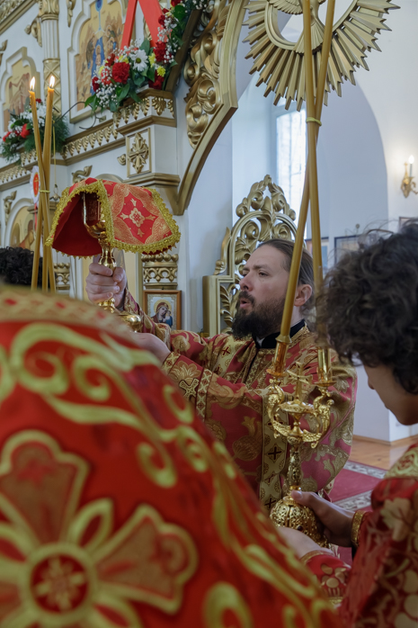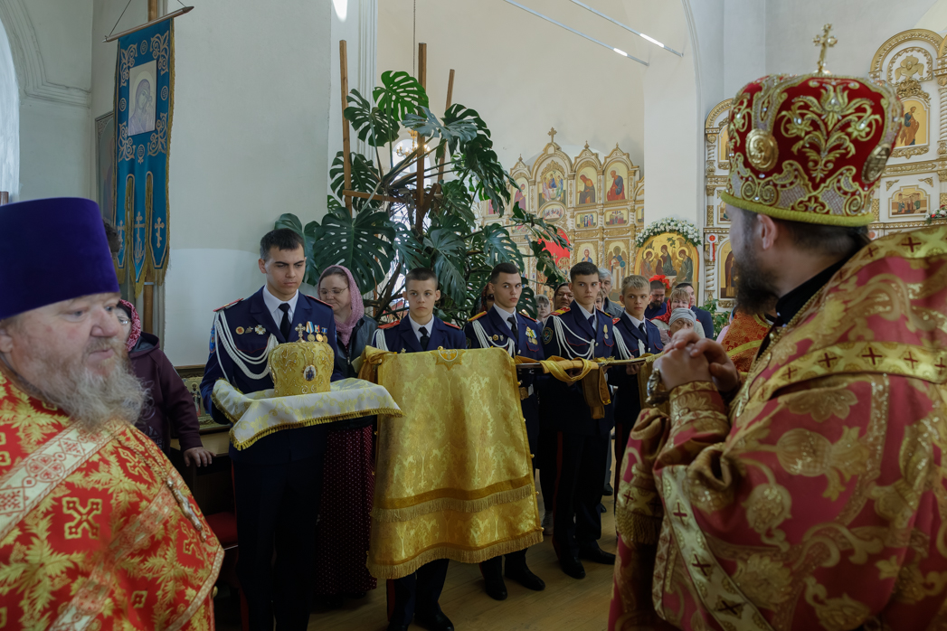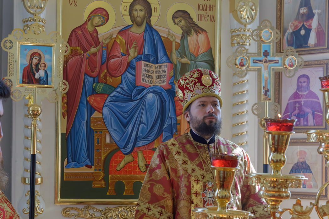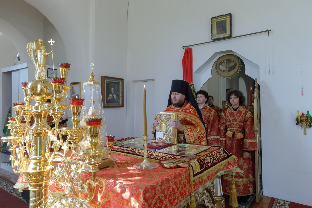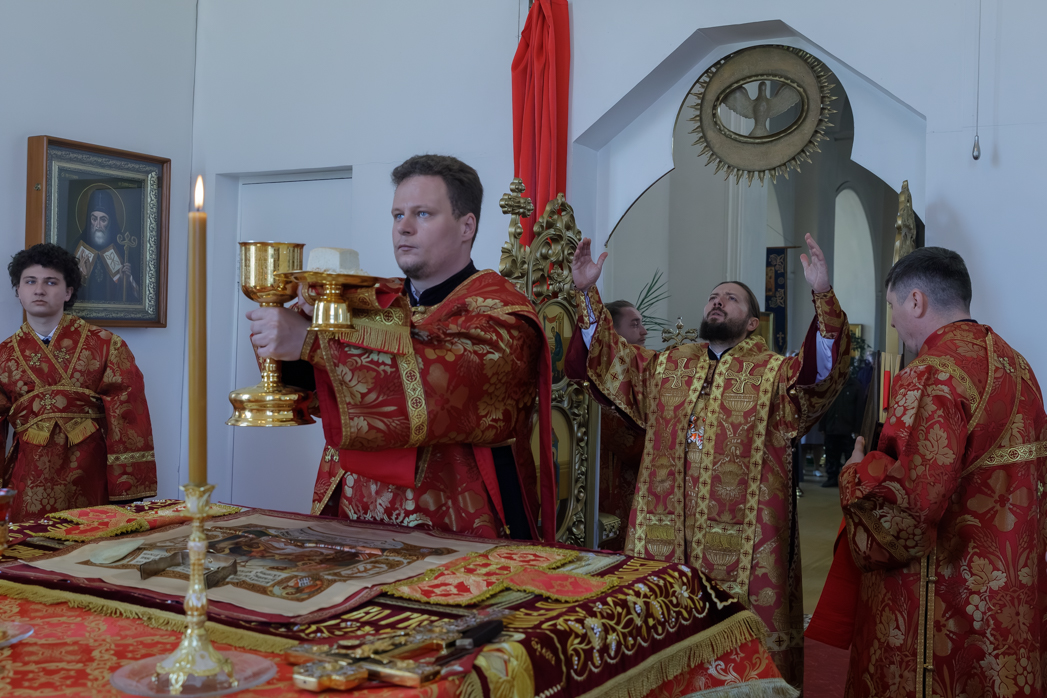 В совершении Божественной литургии святителя Иоанна Златоуста Архипастырю сослужили: благочинный Богучарского церковного округа иеромонах Тихон (Жданов), благочинный Репьевского церковного округа протоиерей Алексий Чибисов и настоятель храма святителя Митрофана, первого епископа Воронежского, протоиерей Сергий Чибисов.
