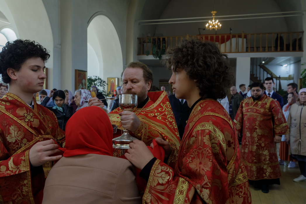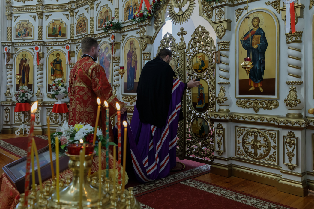 На сугубой ектении были произнесены прошения: «...о еже прияти молитвы нас, недостойных рабов Твоих, в сию годину испытания, пришедшую на Русь Святую...», а также прошение о «Преосвященных архипастырях, пастырях, монашествующих и мирянах земли Украинския, о единстве Церкви Христовы ревнующих, в заточении и гонениях сущих» и особые прошения о сочетающихся браком. Затем епископ Дионисий вознес молитву о Святой Руси. По благословению Святейшего Патриарха Московского и всея Руси Кирилла эта молитва возносится во всех храмах Русской Православной Церкви.