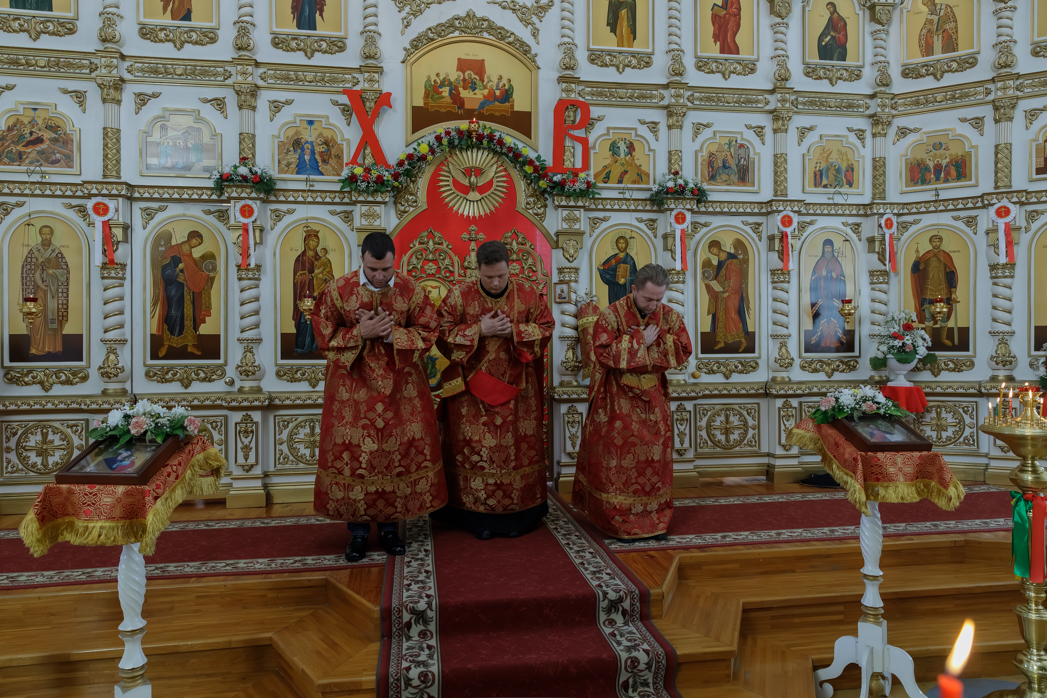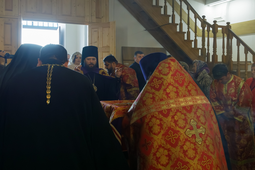 После отпуста было возглашено уставное многолетие Святейшему Патриарху, Правящему Архиерею, сочетавшимся браком супругам, богохранимой стране нашей и всем православным христианам.