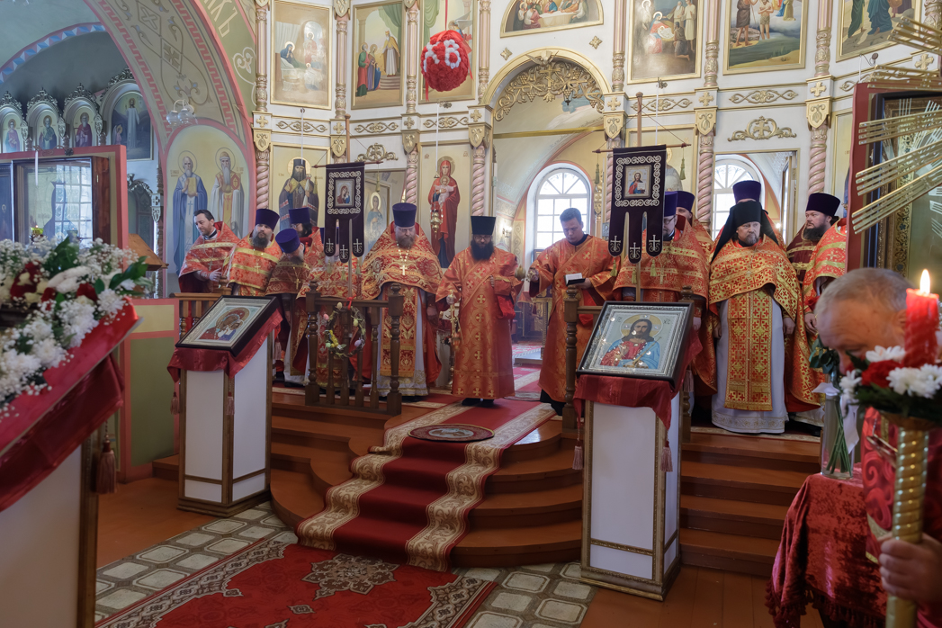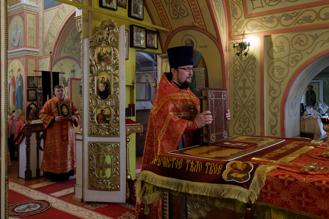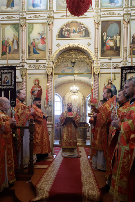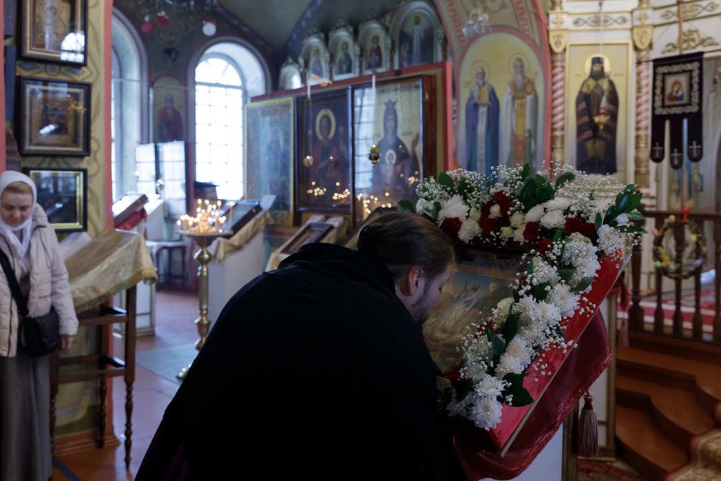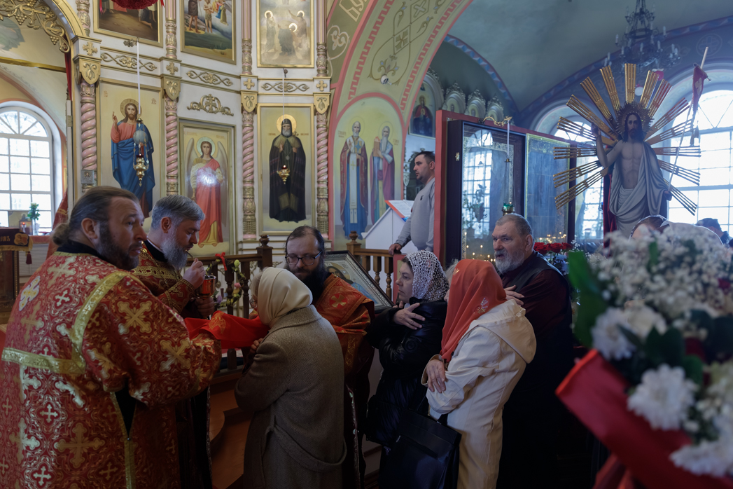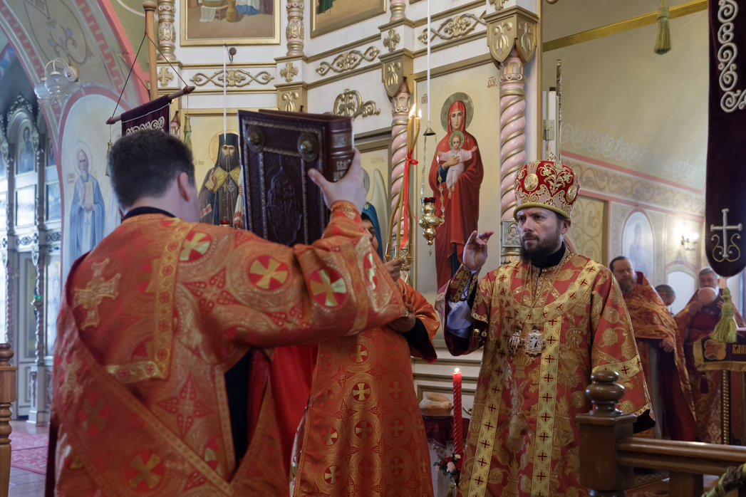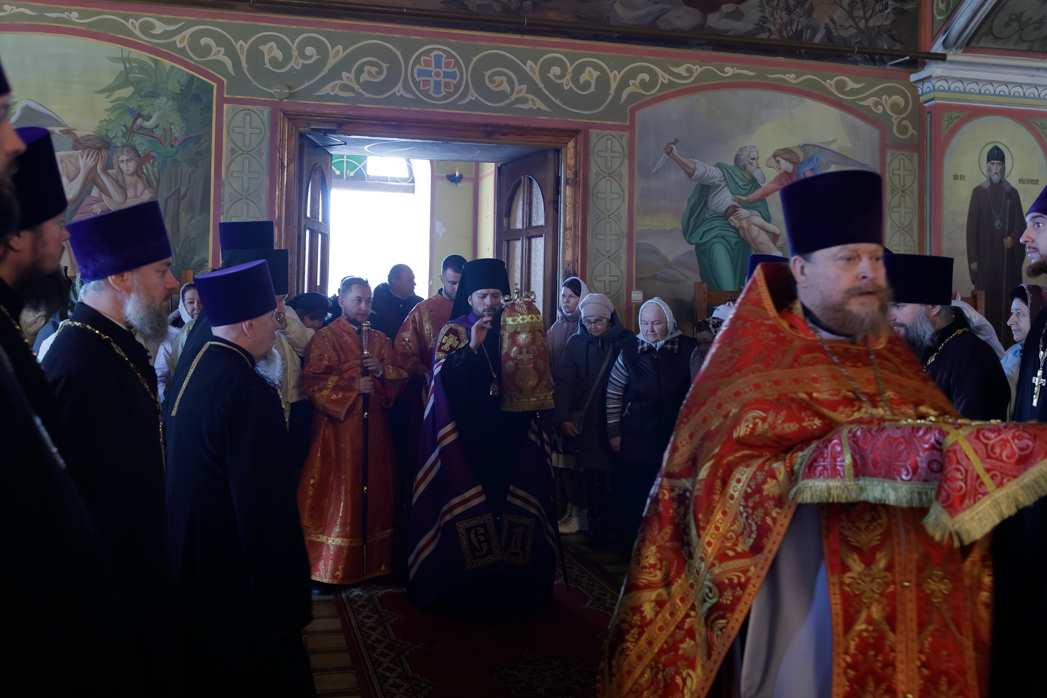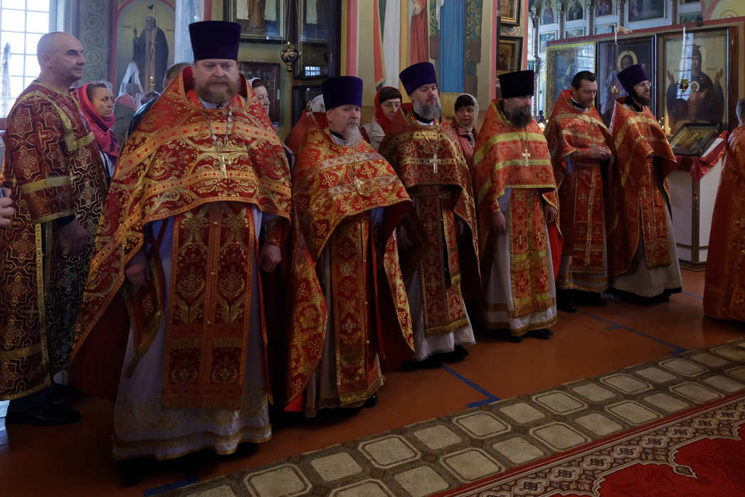 На сугубой ектении были произнесены прошения: «...о еже прияти молитвы нас, недостойных рабов Твоих, в сию годину испытания, пришедшую на Русь Святую...», а также прошение о «Преосвященных архипастырях, пастырях, монашествующих и мирянах земли Украинския, о единстве Церкви Христовы ревнующих, в заточении и гонениях сущих». Затем епископ Дионисий вознес молитву о Святой Руси. По благословению Святейшего Патриарха Московского и всея Руси Кирилла эта молитва возносится во всех храмах Русской Православной Церкви.