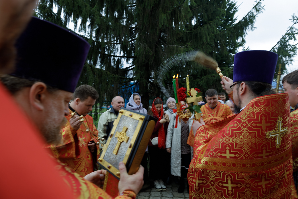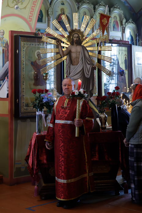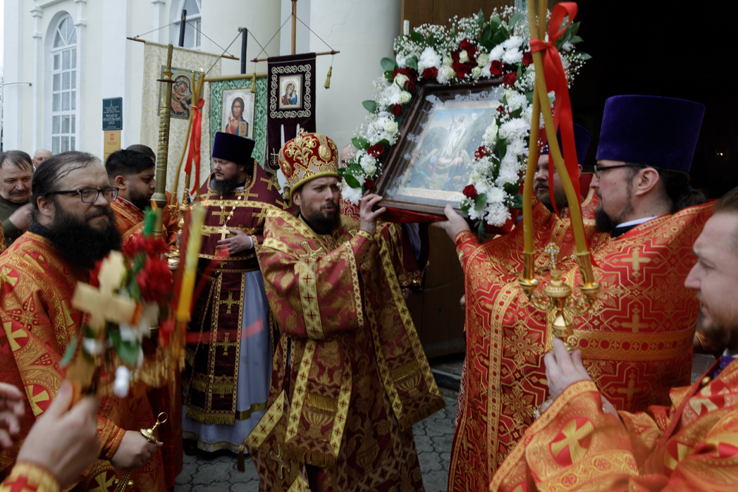 После заамвонной молитвы был совершен пасхальный крестный ход. С пением пасхального канона духовенство и прихожане, во главе с Архипастырем обошли вокруг храма. На четырех сторонах храма совершалось окропление верующих святой водой. У алтаря храма епископ Дионисий возгласил евангельское зачало о Воскресении Христовом.