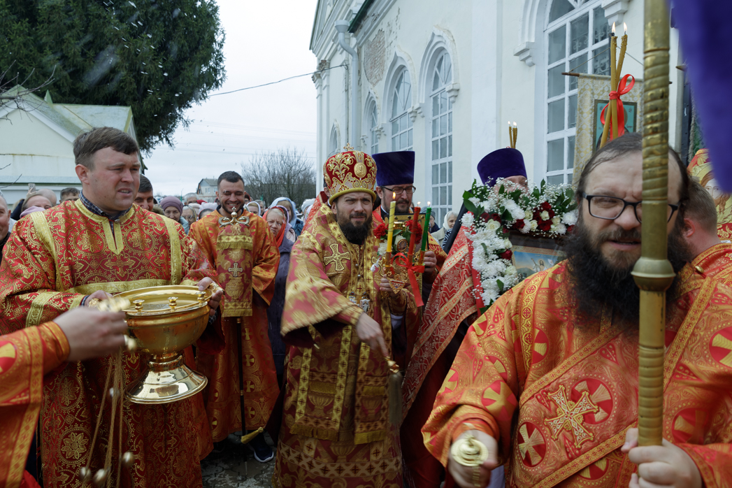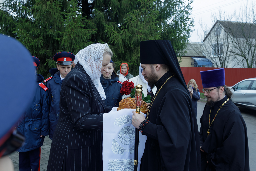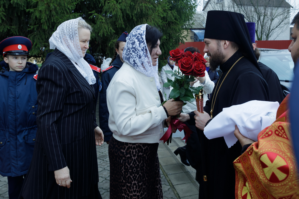 У храма Архипастыря встречали: благочинный Острогожского церковного округа иерей Алексий Курганский, глава администрации Острогожского муниципального района Сергей Иванович Хорошилов и прихожане храма.