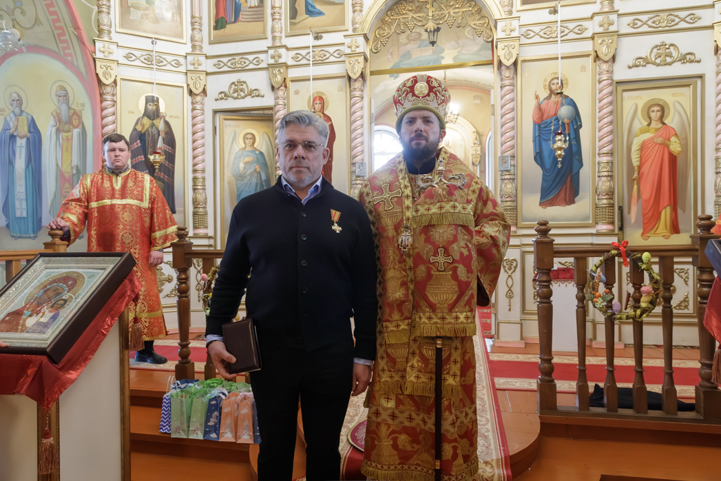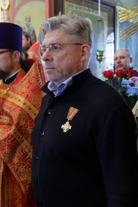 Далее, во внимание к усердным трудам на благо Святой Церкви и активное участие в жизни храма во имя святителя Николая архиепископа Мир Ликийских села Урыв-Покровка, Острогожского района, Правящий Архиерей вручил медаль ордена святого благоверного князя Даниила Московского, ведущему научному сотруднику Объединенного центра социологии и экономики знания ИС ФНИСЦ Российской Академии наук Олегу Федоровичу Шахову.