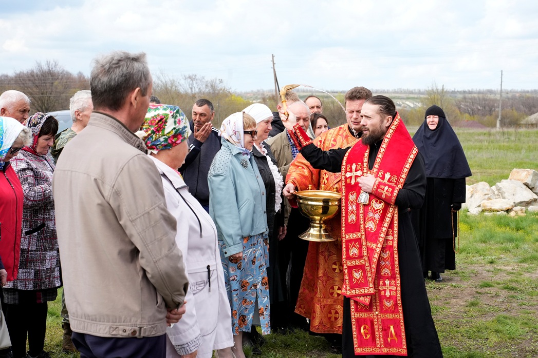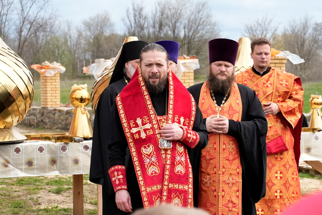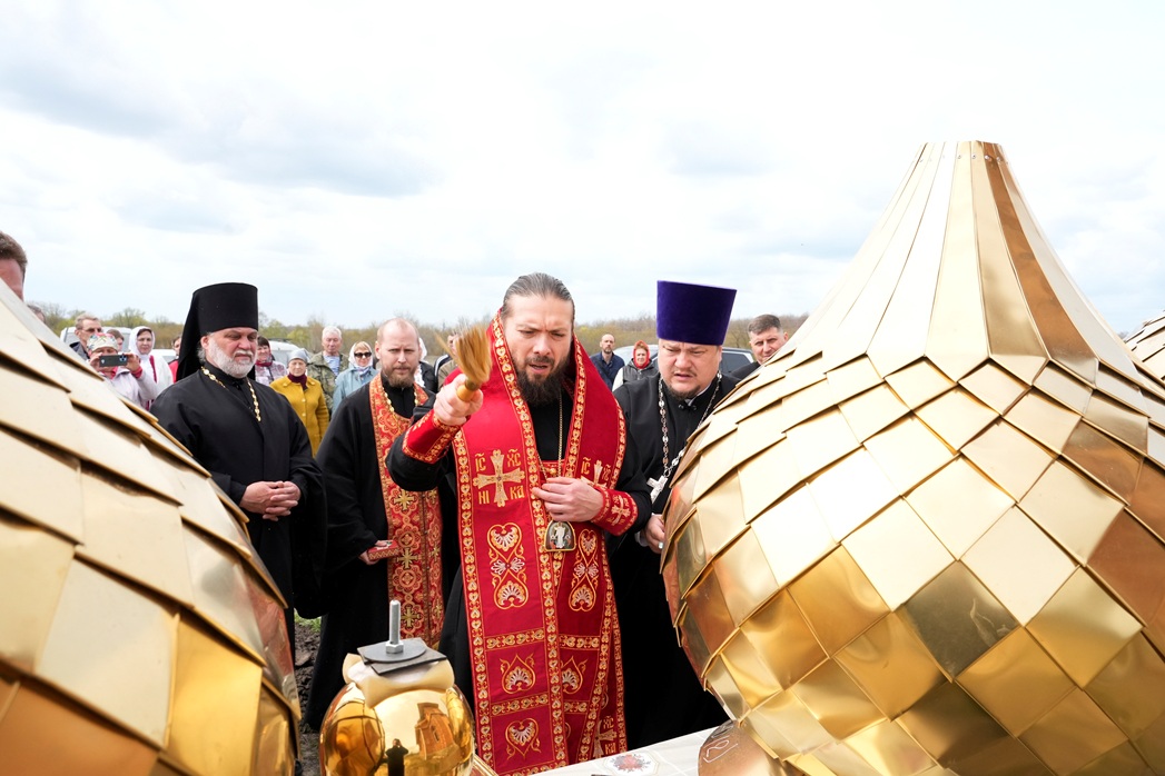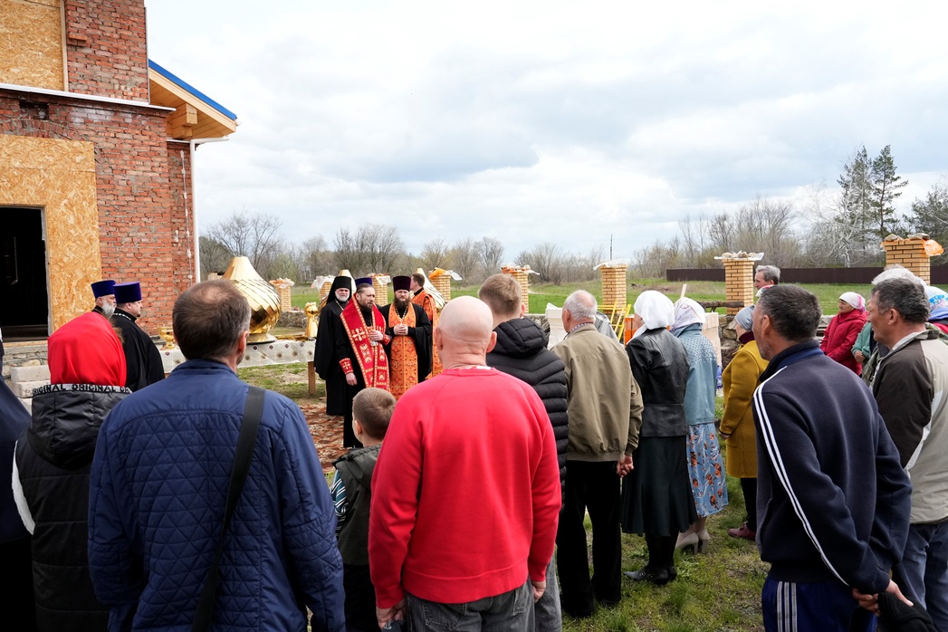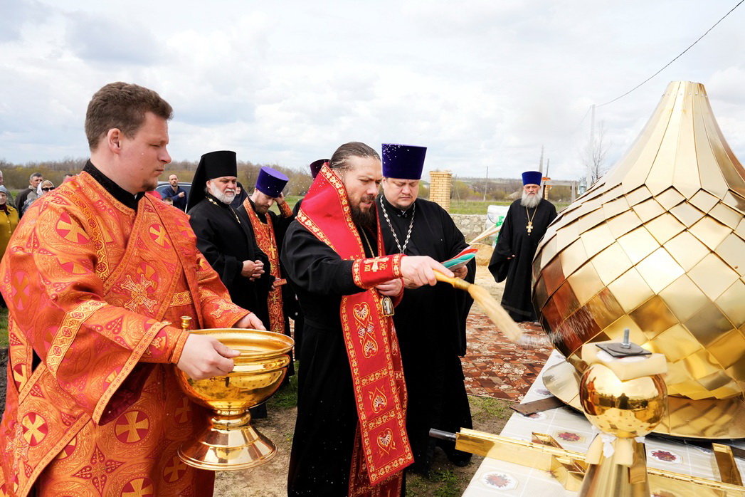 Затем в присутствии жителей села Преосвященнейший Дионисий, епископ Россошанский и Острогожский, совершил освящение новосооруженных куполов и крестов для храма.
