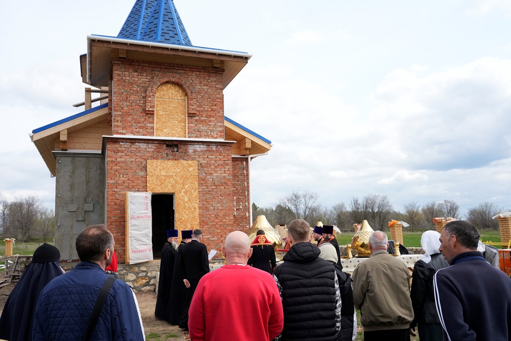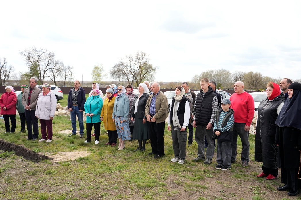 У храма Правящего Архиерея встречали: настоятель храма святых апостолов Петра и Павла села Петропавловка иерей Ярослав Манохин вместе со строителем храма Олегом Владимировичем Волковым и жителями Новобогородицкого сельского поселения.