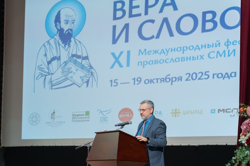 В Зале церковных соборов Святейшего Патриарха Кирилла от имени участников фестиваля приветствовал председатель Синодального отдела по взаимоотношениям Церкви с обществом и СМИ, временно исполняющий обязанности руководителя Пресс-службы Патриарха Московского и всея Руси Владимир Романович Легойда.