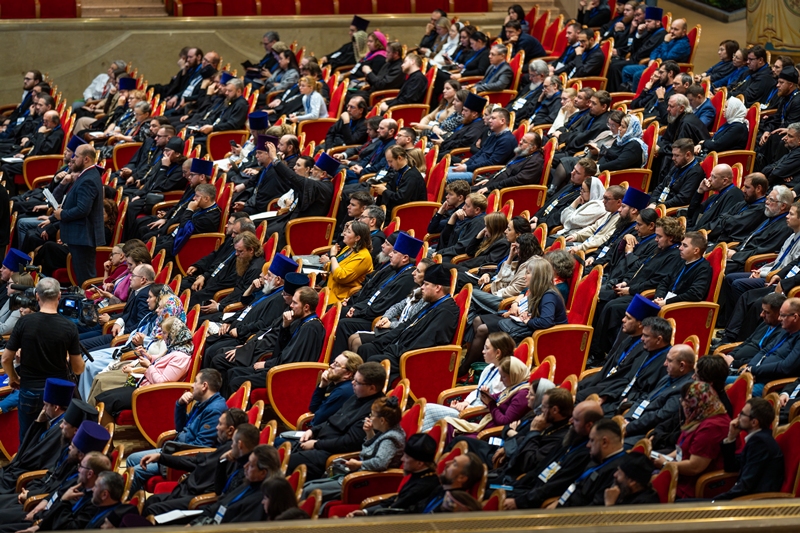 Среди присутствовавших в Зале церковных соборов были архиереи, священнослужители, сотрудники синодальных учреждений Русской Православной Церкви, в частности: управляющий делами Московской Патриархии, первый викарий Патриарха Московского и всея Руси по городу Москве митрополит Воскресенский Григорий; епископ Черняховский и Славский Николай; епископ Россошанский и Острогожский Дионисий; личный секретарь Святейшего Патриарха Кирилла епископ Раменский Алексий; председатель Синодального отдела по церковной благотворительности и социальному служению протоиерей Михаил Потокин; руководитель Управления по работе с общественными организациями Синодального отдела по взаимоотношениям Церкви с обществом и СМИ протоиерей Димитрий Рощин; ректор Российского православного университета св. Иоанна Богослова А.В. Щипков; заместитель председателя Синодального отдела по взаимоотношениям Церкви с обществом и СМИ В.В. Кипшидзе; заместитель председателя Синодального отдела по взаимодействию Церкви с обществом и СМИ, главный редактор Информационного центра радиовещания, искусства и культуры «Вера, Надежда, Любовь» И.А. Кузьменков.