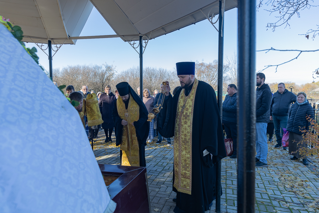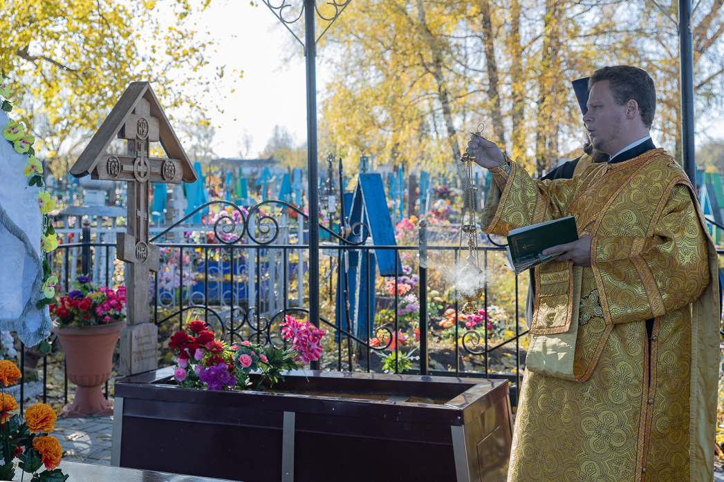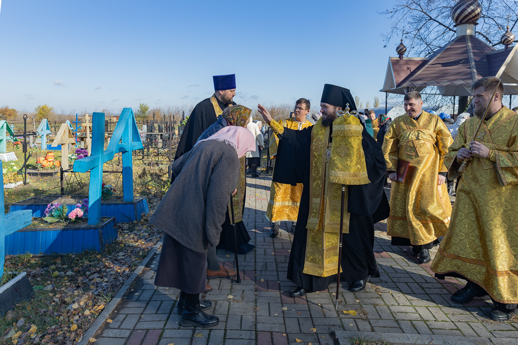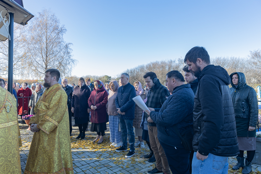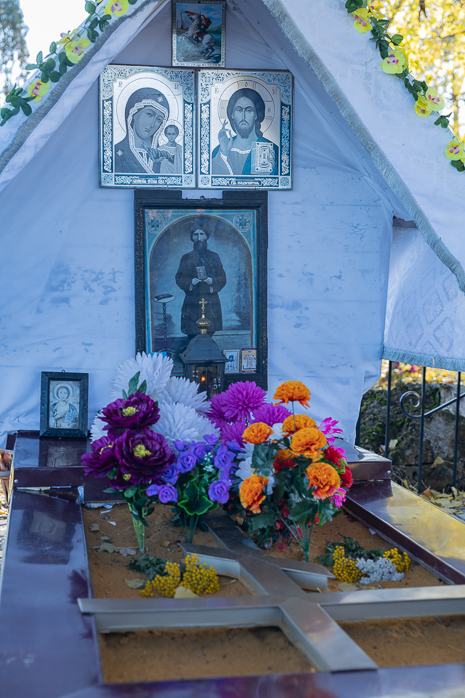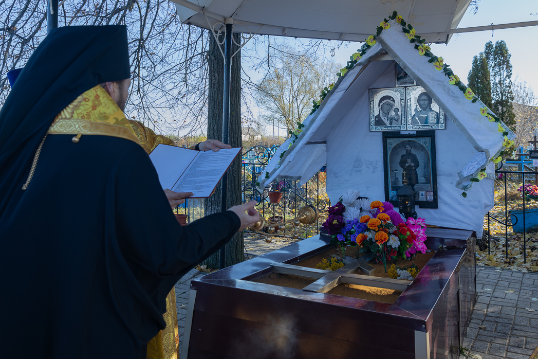 Затем Преосвященнейший Владыка проследовал на сельское кладбище, где возглавил панихиду на могиле почитаемого в народе старца Спиридона (Спиридона Григорьевича Сухинина).