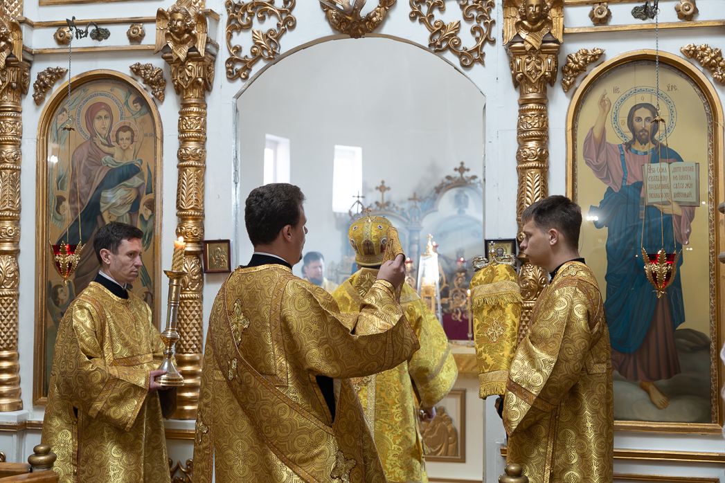 Его Преосвященству сослужили: благочинный Острогожского церковного округа иерей Алексий Курганский и настоятель храма святого Великомученика и Победоносца Георгия села Терновое иерей Артемий Дашенко.