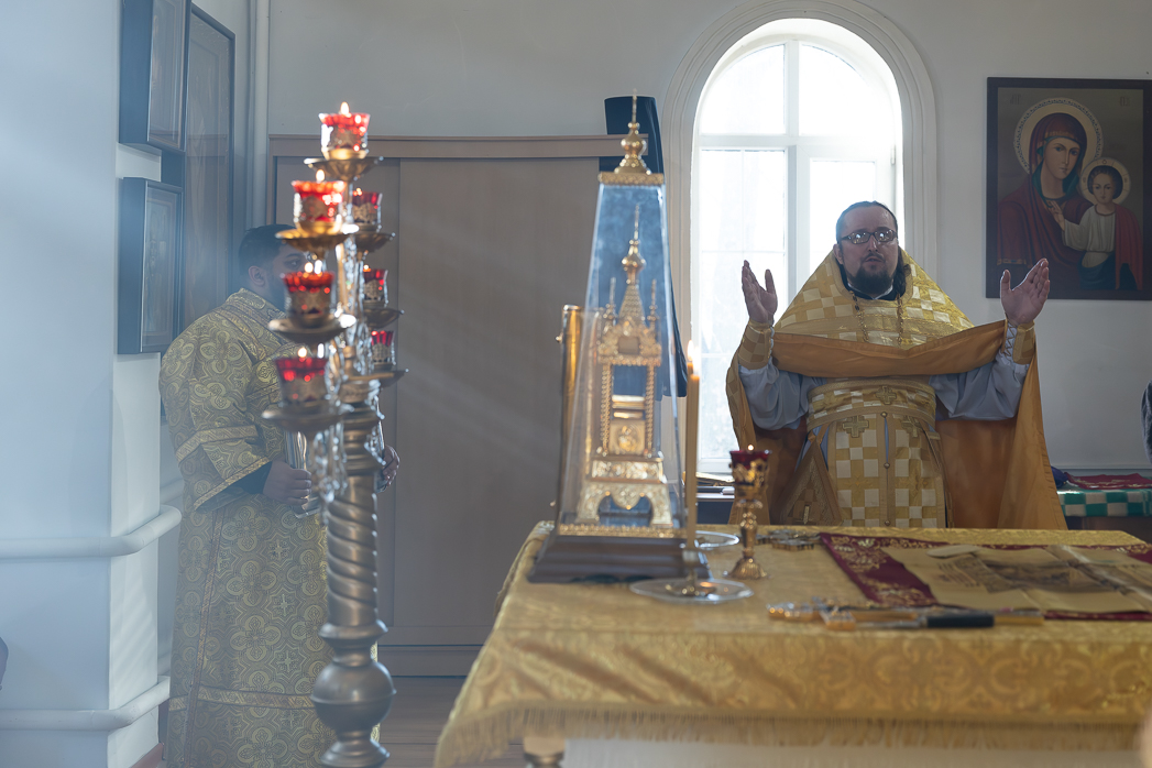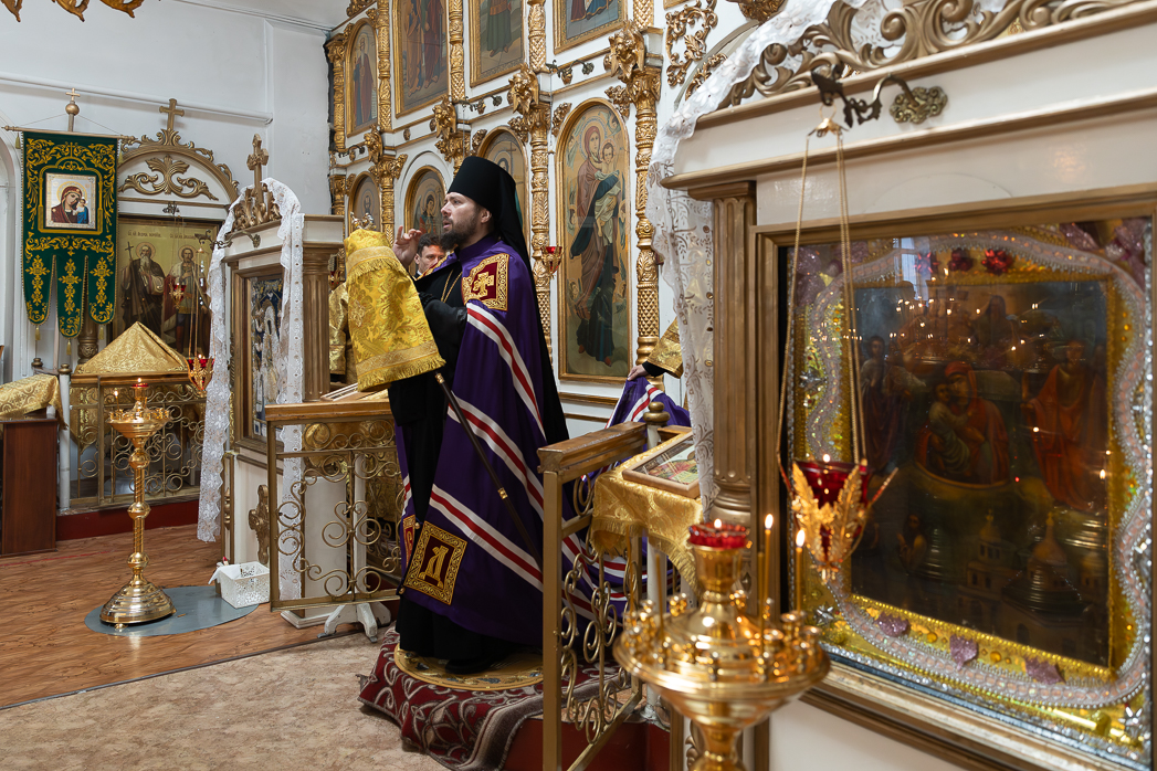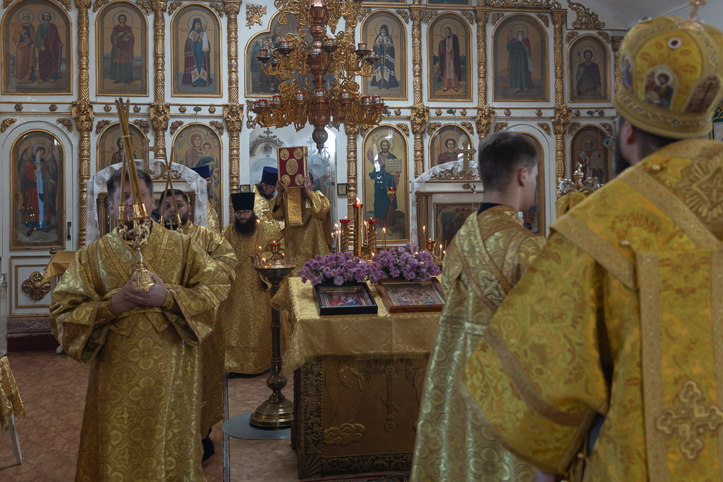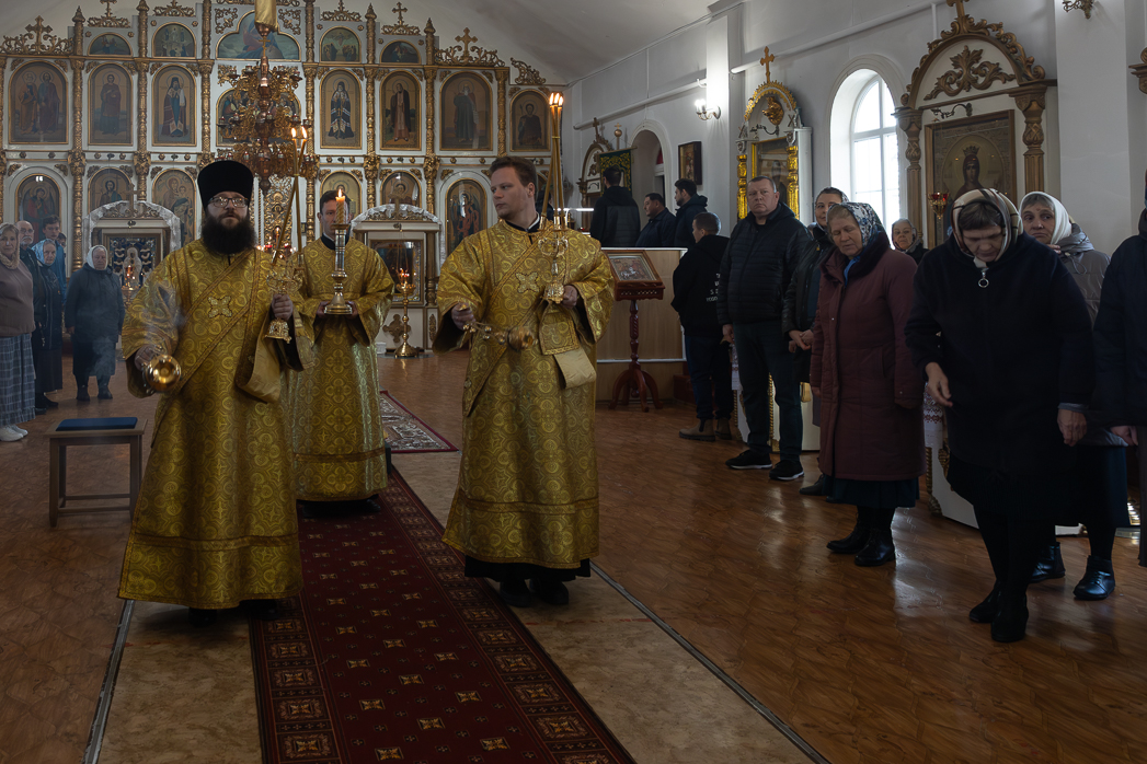 На сугубой ектении были произнесены особые прошения: «...о еже прияти молитвы нас недостойных рабов Твоих в сию годину испытания, пришедшую на Русь Святую...». Затем епископ Дионисий вознес молитву о Святой Руси. По благословению Святейшего Патриарха Московского и всея Руси Кирилла эта молитва возносится во всех храмах Русской Православной Церкви.