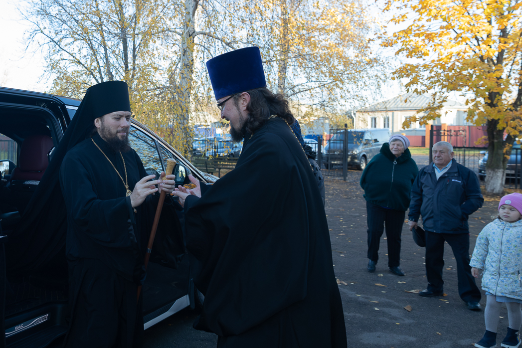 У храма Правящего Архиерея встречали: благочинный Острогожского церковного округа иерей Алексий Курганский; глава администрации Терновского сельского поселения Валентина Валерьевна Черникова, а также прихожане храма.