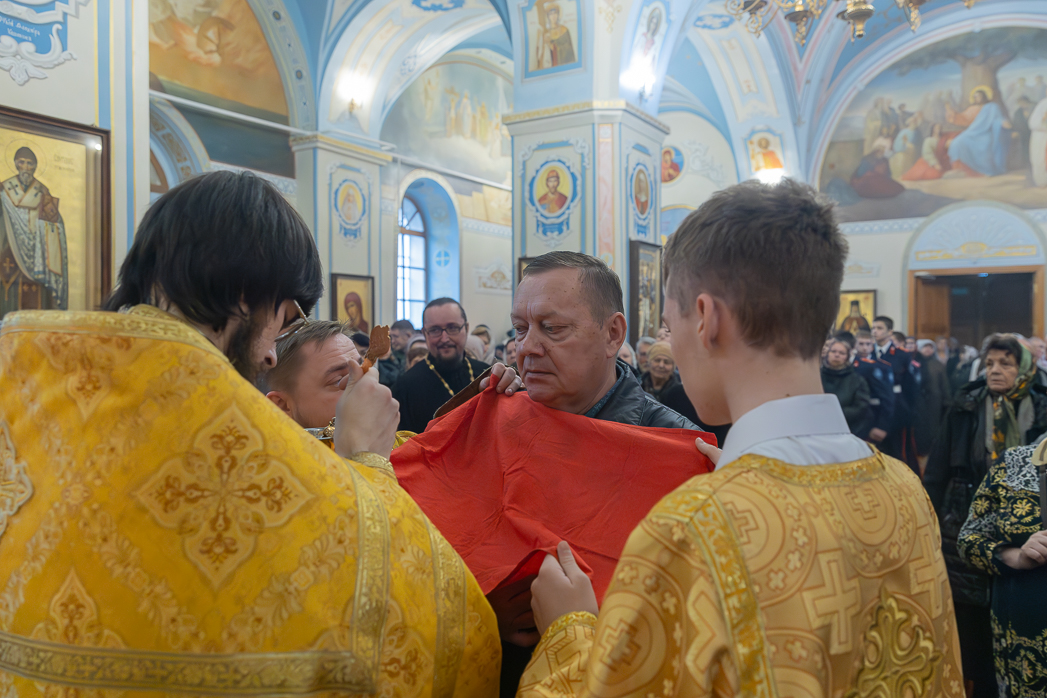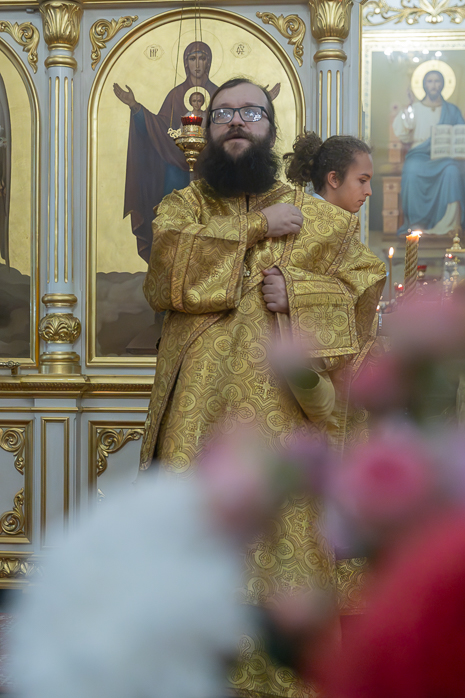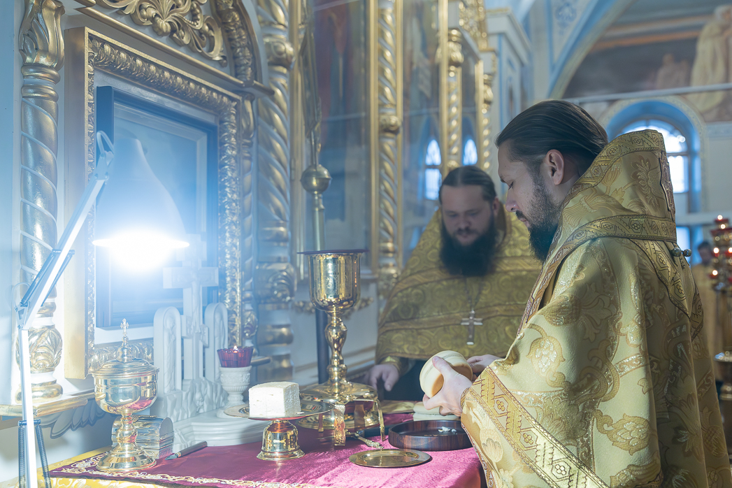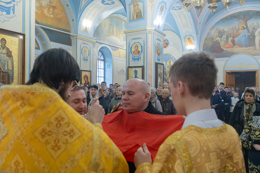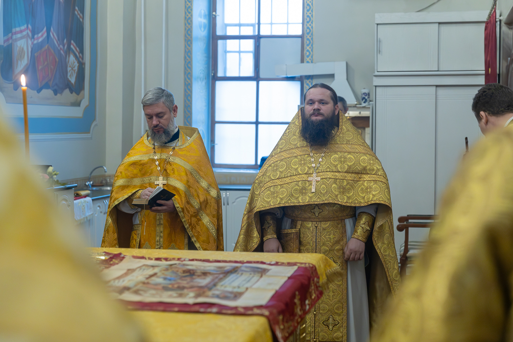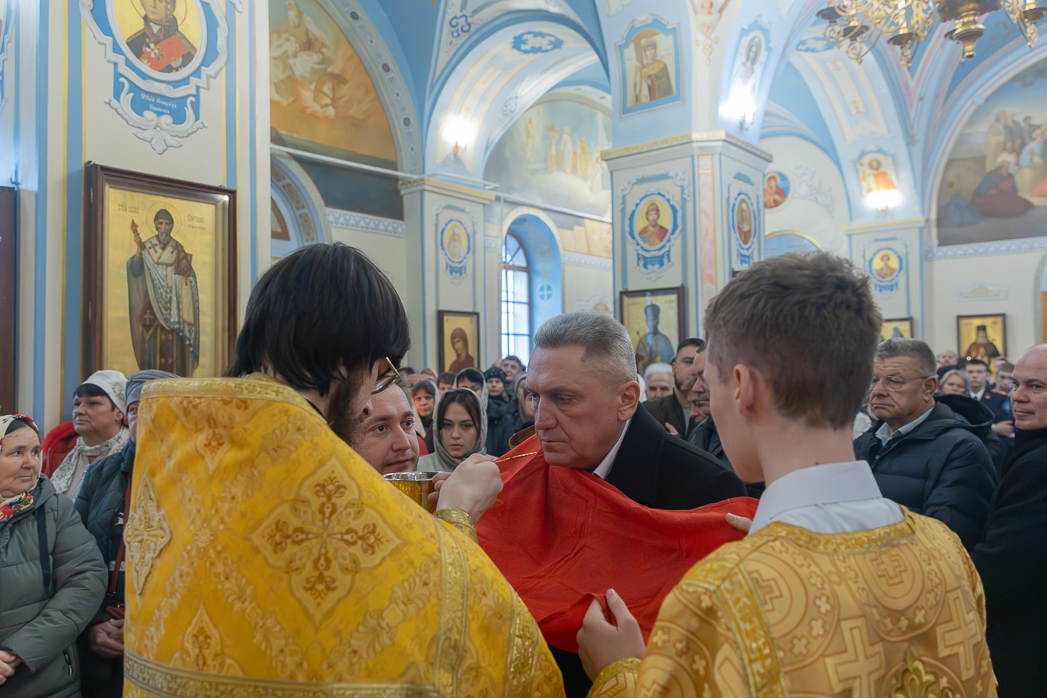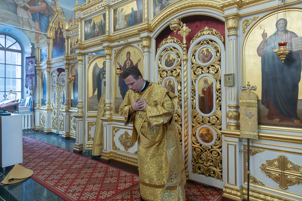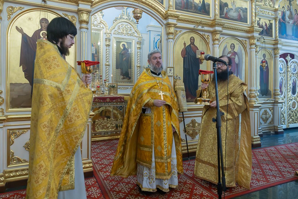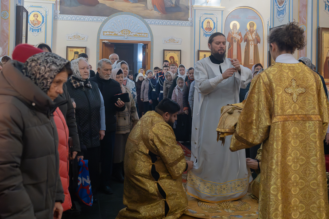 Проповедь перед причастием произнес клирик Тихоновского соборного храма иеродиакон Захария (Касьянов).