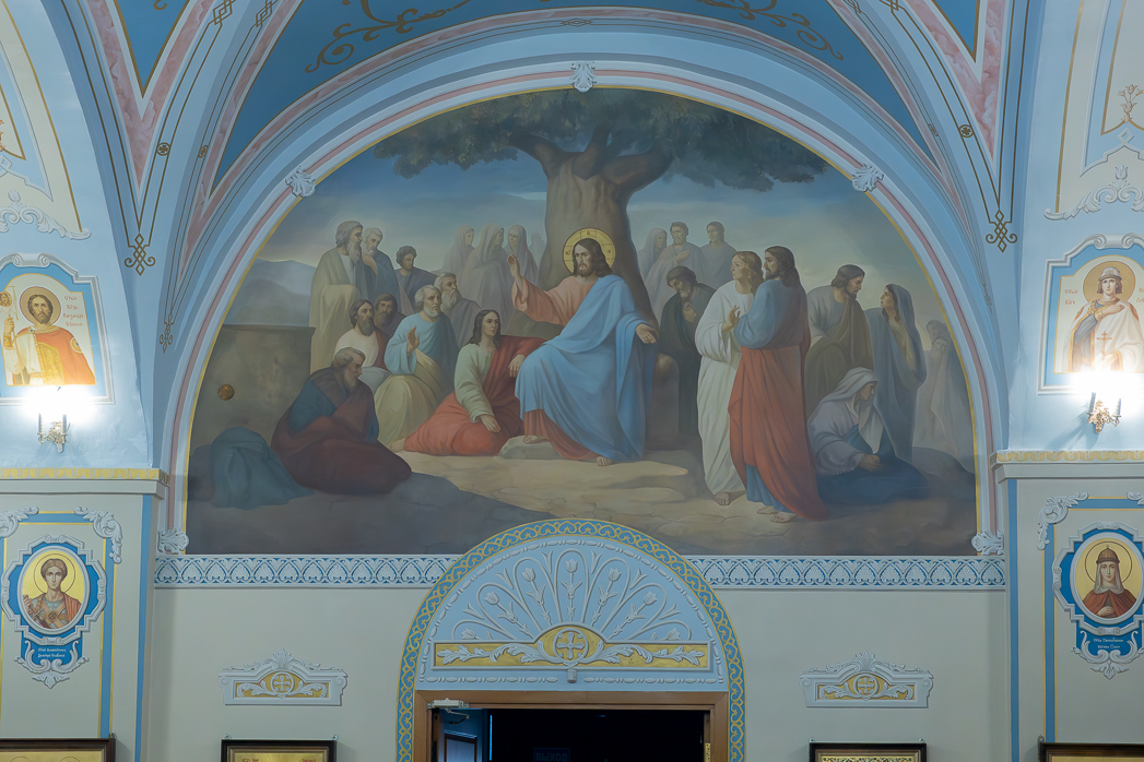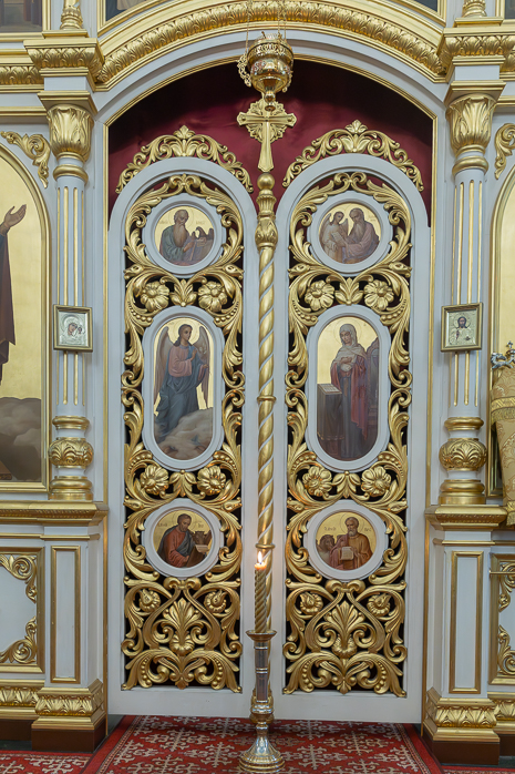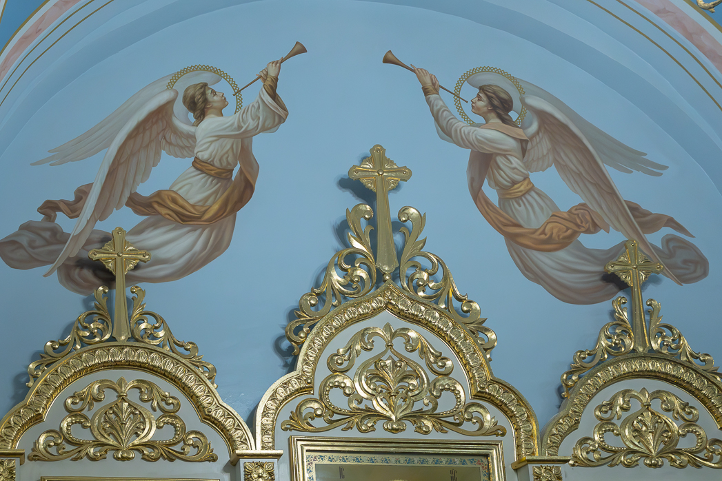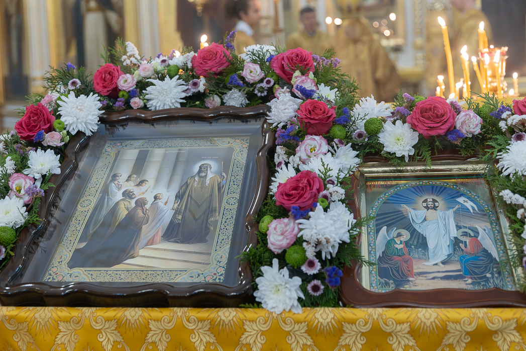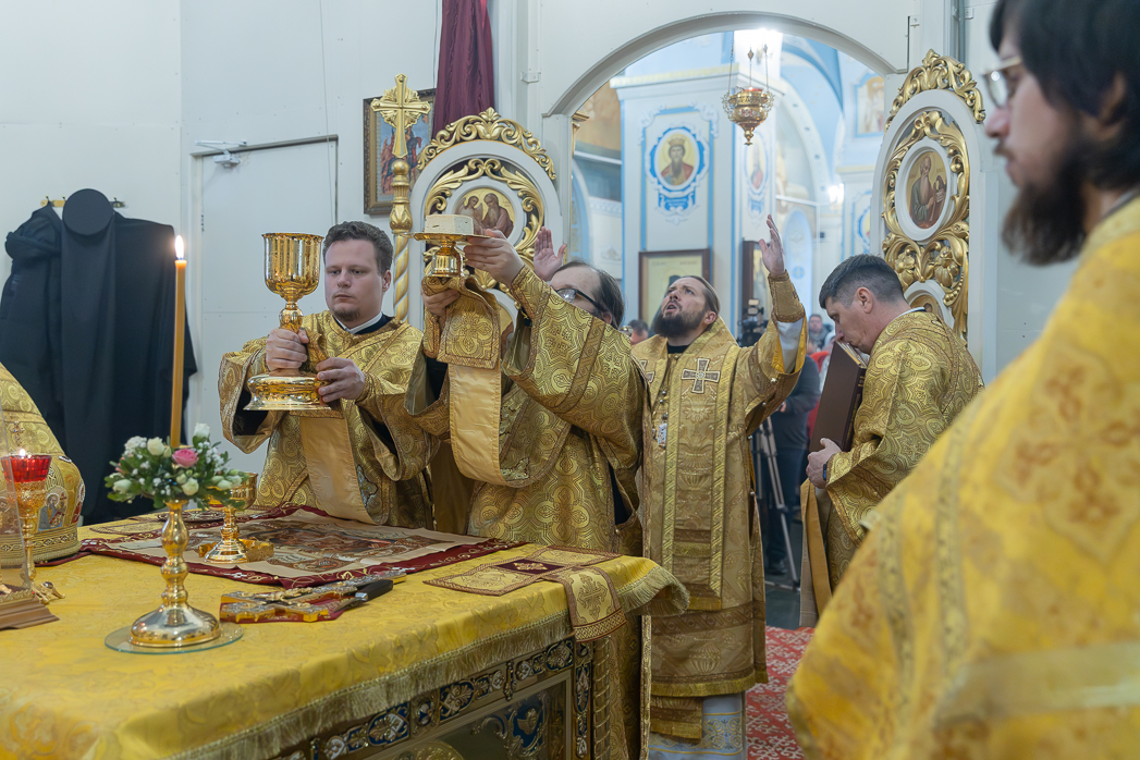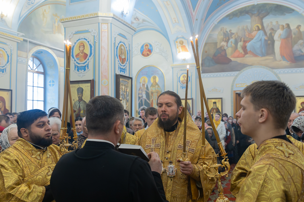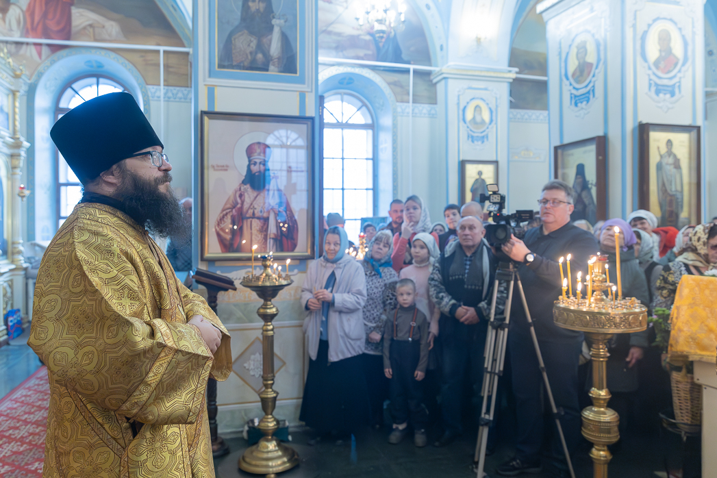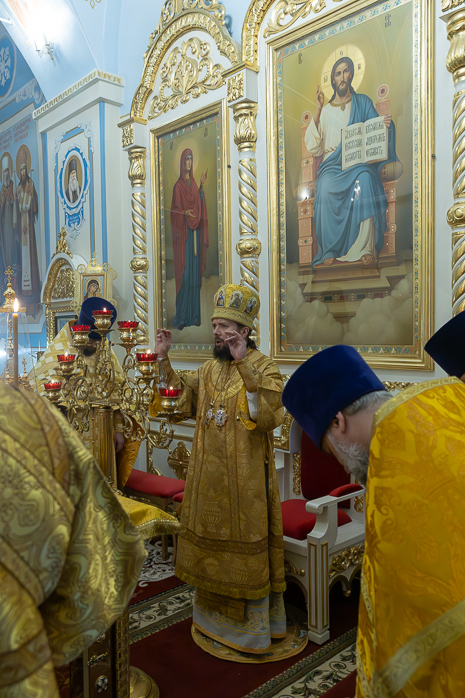По завершении Литургии Преосвященнейший епископ Дионисий совершил освящение новоизготовленной росписи Тихоновского соборного храма.